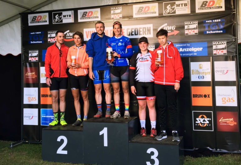 GEDERN – Auf der Strecke des Vulkan-Race gewinnen Natascha Fischer und Benjamin Schul vom RSC Grünberg das 2-Stunden-Rennen zum vierten Lauf des MTB Hessencups. Den Sieg der weiblichen Einzelstarter sicherte sich Birgit Jüngst-Dauber.