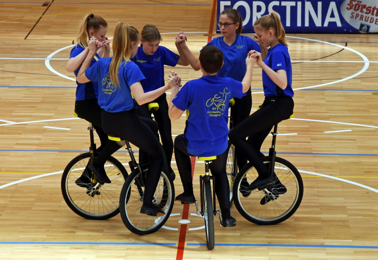Im 6er Kunstradsport erwischte die Mannschaft mit Vanessa Berk, Lisa Brix, Sabrina Ostrowaki, Jessica Unger, Kim und Kinora Reinhardt einen weniger guten Tag. Sie konnten bei den zweiten Mühlen am Ende der Übung nicht richtig greifen und mussten vom Rad absteigen. Zudem gab es Punktabzüge in der Schwierigkeit. Kleinere Abzüge erhielten sie noch in der Ausführung und kamen mit einer ausgefahrenen Punktzahl von 59,98 Punkten auf den vierten Platz. Das Hauptziel, das Erreichen der Teilnahme zum Halbfinale der Deutschen Meisterschaft, wurden von den meisten Sportlern erreicht und der RVG kann insgesamt zufrieden sein. (mbp | Fotos: Martina Beele-Peters)
