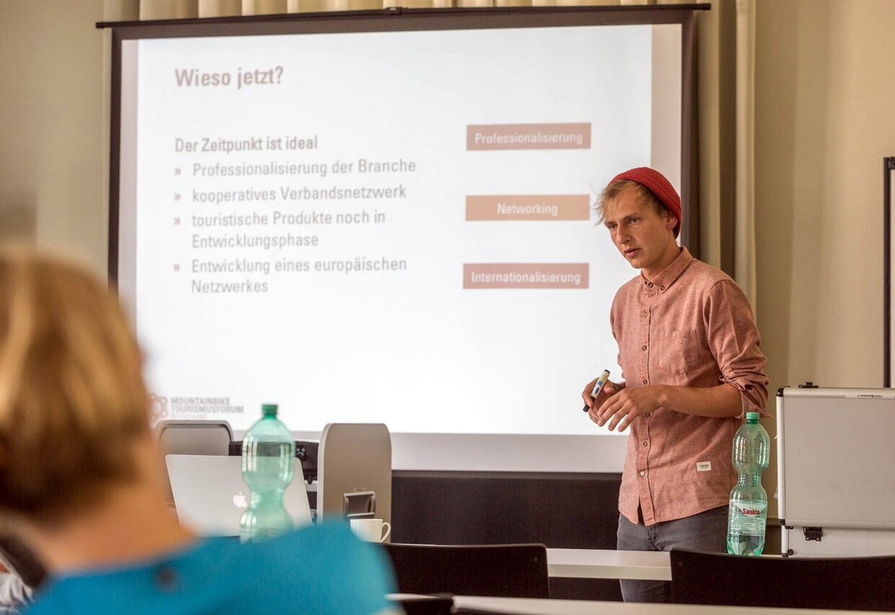 Jan Zander, Geschäftsführer des Unternehmens Trailtech aus dem Harz zeigte Wege auf für erfolgreiches Stakeholdermanagement. Beispielhaft arbeitete er Wege heraus, mit der Destination, Unterkünften und anderen Firmen erfolgreich zu kooperieren. Anschließend gab Sam Morris, Vorstand der europäischen Guiding- und Fahrtechnikanbietervereinigung (EO-MTBiNG) einen Überblick über die Klassifizierung von Guides- und Fahrtechniktrainern auf europäischer Ebene, die eine internationale Qualitätssicherung erreichen möchte.