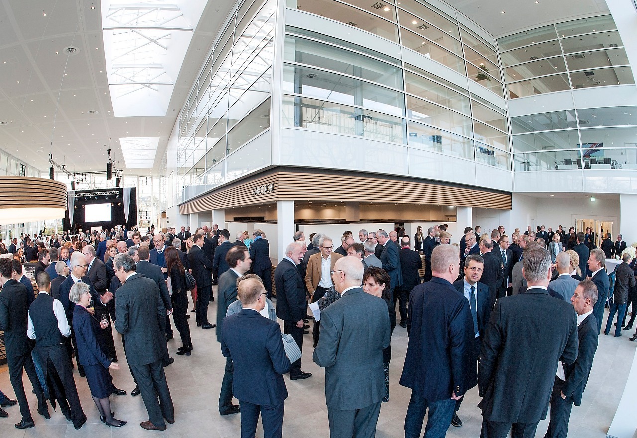 Rund 2.300 Tonnen Stahl, 125 km Kabel, 15.000 m² Gussasphalt und 3.000 m² Fliesen – das ist nur ein Teil der Baustoffe, die der Generalunternehmer Implenia seit Baubeginn am 2. Mai 2016 verarbeitet hat. Rund anderthalb Jahre nach Projektstart steht fest: Die Messe Essen hat ihre Etappenziele innerhalb des gesetzten Zeit- und Budgetrahmens sowie im Einklang mit dem Veranstaltungskalender erreicht. Anlass genug, den erfolgreichen Abschluss der ersten Bauphase und die Einweihung des neuen Foyers Ost gemeinsam mit rund 500 geladenen Gästen, Kunden und Partnern der Messe Essen zu feiern.