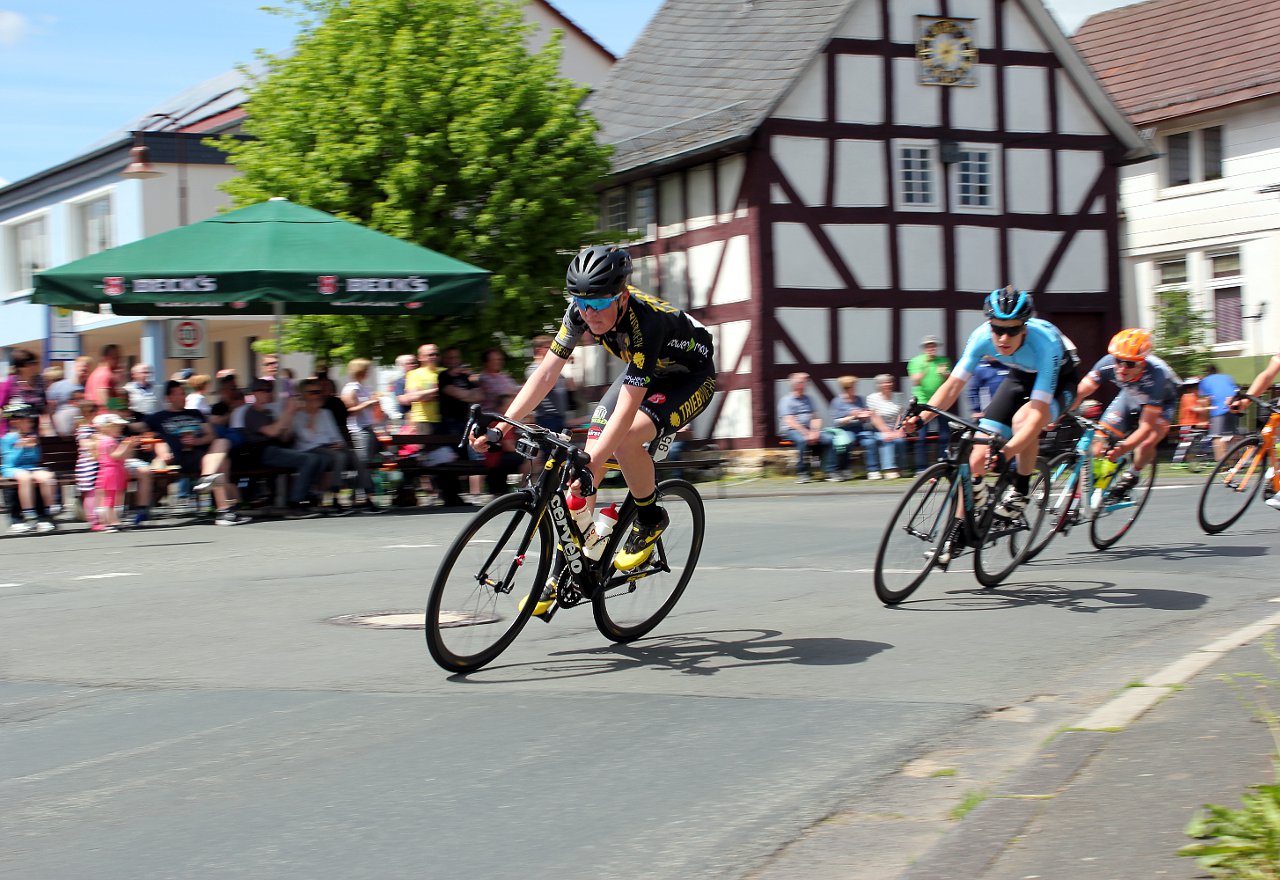 Ein sehr hohes Anfangstempo von über 41 Kilometern in der Stunde zeigte, dass es eine anspruchsvolle Meisterschaft auf selektiver Strecke werden würde. Und auch zur Mittagszeit, als schon gut zwei der erwarteten rund viereinhalb Stunden Fahrzeit zum Meistertitel absolviert waren, kehrte kein Funken von „Mittagsruhe“ ein. Hinter dem Ortsausgang von Dautphe war nach 50 Kilometern der Renndistanz „Essen fassen“ erlaubt und auch dringend empfohlen, wenn man nach 188 Kilometern zum 20. Mal die ansteigende Zielgerade bewältigen und eventuell noch um den Titel sprinten wollen würde. Die Bundestrainer Ralf Grabsch und Patrick Moster begutachteten das Treiben aus dem Begleitfahrzeug um die Startplätze für die kommende Weltmeisterschaft optimal zu besetzen. Auch in den Ortsdurchfahrten von Silberg und Hommertshausen hatten die Zuschauer an die Verpflegung und ein Durchhalten bei der Anfeuerung der Fahrer gedacht und sich entsprechend auf die lange Renndistanz eingestellt. Neben dem Start- und Zielbereich sowie der Verpflegungszone und dem höchsten Punkt der Strecke hinter Dautphe waren diese Stellen echte Zuschauermagnete, die auch die Verantwortlichen des Bund Deutscher Radfahrer begeisterten – und die sind mit der Radbundesliga und Nationalkadereinsätzen viele hochkarätige Rennen gewohnt.