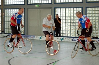 GIESSEN – Nur alle zwei Jahre findet es statt und vereint erfahrene Spieler aus ganz Deutschland in Kleinlinden: Wir haben das 11. Alt-Herren-Radball-Turnier der Radfahrervereinigung 1904/27 Gießen-Kleinlinden mit der Fotokamera besucht.