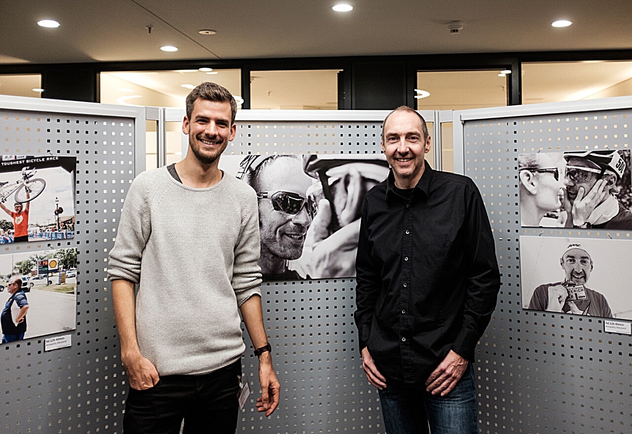Guido Löhr konnte sich aber auf die Helfer in seinem zehnköpfigen Team verlassen. Dazu zählte auch Fotograf Saron Duchardt, der in Fotos, Worten und Videos über den Rennverlauf berichtete, damit Löhrs Fans mehr als den sich bewegenden Punkt auf der Livekarte verfolgen konnten. Die dabei entstandenen Fotos sind jetzt in der Zentrale der Sparkasse Gießen zu sehen. Den Stellwänden, an denen sie hängen, folgend, kann der Besucher das Rennen vom Start bis zum Ziel in tollen und teils sehr persönlichen Motiven noch einmal auf sich wirken lassen. Nicht alle Aufnahmen seien wohnzimmertauglich, aber alle Bilder könnten auch gekauft werden, gab Duchardt den Besuchern mit einem Lächeln mit auf den Weg. (pm/sd | Foto: Saron Duchardt, saronduchardt.de)