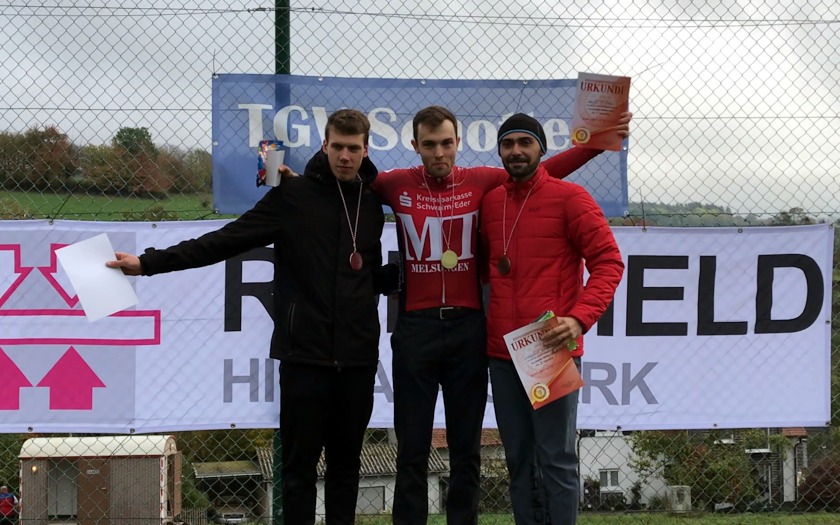 Dass außer Noah Jung auch ein paar andere Herren so spät in der Saison noch in guter Verfassung waren, zeigte sich nach der ersten von drei Runden. Es hatte sich eine fünfköpfige Spitzengruppe gebildet, in der neben Noah Jung noch der Nordhesse Aaron Wilhelmi (MT Melsungen) sowie der Biebertaler Niclas Zimmer (RSG Gießen und Wieseck / Stenger-Bike-Team) und die beiden Wahl-Wiesecker Luca Adler (TV Bad Orb) und Rico Libesch (TGV Schotten / HWG Gedern) vertreten waren. Die Medaillenränge der Herrenklasse U23 und Elite hatten damit schon ihre Namen, doch die Reihenfolge stand ebenso noch zur Klärung, wie der Gesamtsieg auf der Langstrecke.