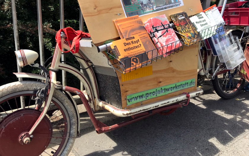 Alles in Bewegung: Auch Flyer und Broschüren kamen vom Fahrrad. Foto: Stephan Dietel