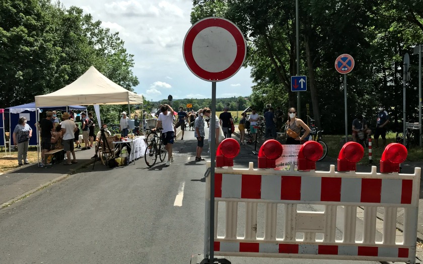 Das geplante Straßenfest durfte aber nicht ganz in dem Umfang stattfinden, den seine Organisatoren bei der Stadt Gießen angemeldet hatten. Die Auftaktveranstaltung am Samstagabend (19.06.) wurde auf den Vorplatz des Wiesecker Bürgerhauses an der Philosophenstraße begrenzt. Erst am Sonntag (20.06.) durfte dann auf einem 650 Meter langen Abschnitt die in dieser Zeit für den Verkehr gesperrte Straße genutzt werden.