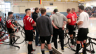 „Wo andere ein, zwei Torchancen brauchen, brauchen wir eher drei, vier deutliche Chancen“, ordnete der Krofdorfer Abwehrspieler Jens Häuser selbstkritisch ein. Auch beim Spiel gegen den RSV Waldrems dürfte es dem 51-jährigen in seiner 44. Saison unter den Nägeln gebrannt haben, seine Mannschaft auf dem Spielfeld zu unterstützen, doch die verletzten Rippen machten seinen erfahrenen Einsatz weiter unmöglich. So kam Ersatzspieler Felix Nickel, der erst seit fünf Jahren Radball spielt, noch öfter zum Einsatz und verdiente sich damit auch einen anerkennenden Schulterklopfer von Trainer Thorsten Häuser, wenngleich man gegen des RSV Waldrems mit 0:2 unterlag. „Eigentlich muss man alle fünf bis sieben Minuten regelmäßig durchwechseln, um sich nicht zu verbrauchen“, wusste Krofdorfs Stürmer Luca Wagner, doch ohne ausreichend viele Ersatzspieler, war den Mittelhessen diese Möglichkeit nicht gegeben und damit jeder deutlich mehr als üblich gefordert. Hinzu kommt im Falle der Krofdorfer, dass man mitunter gegen gut zehn Jahre jüngere Gegner spielt, das 5er-Radballspiel nicht mehr ganz so intensiv wie früher trainiert und dass man bei der DM noch eine Begegnung mehr als an gewöhnlichen Spieltagen zu meistern hat, ordnete Kapitän Sascha Götz ein. Mit seinem früheren 2er-Partner Luca Wagner hat Götz seit einem Jahr seine aktive Laufbahn eigentlich hinter sich, doch im 5er wollen beide ihrer Mannschaft weiter treu bleiben. Die Rückkehrer Patrick Uwiß und Henrik Dellner, die einige Jahre pausierten, verliehen der Mannschaft jetzt wieder weiter an Stärke. Mit den erfahrenen Steven Johncox, Philipp Schäfer und Torwart Jascha Wagner steht in Summe sehr viel Erfahrung auf dem Spielfeld, mit der man sich auch jungen Mannschaften gegenüber gut aufgestellt sieht.