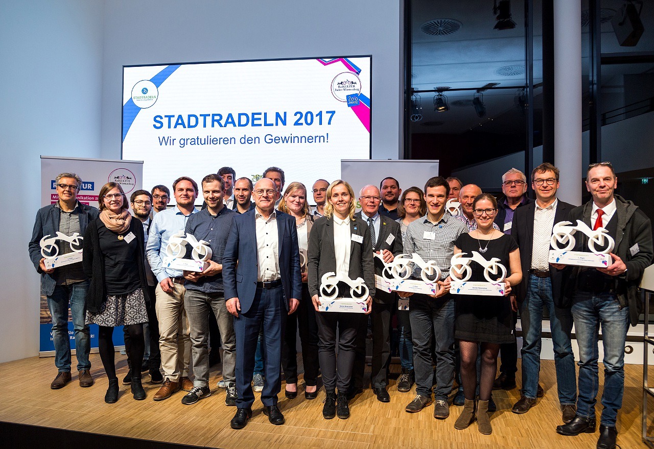 Baden-Württembergs Verkehrsminister Winfried Hermann (MdL) blickte am 14. November gemeinsam mit Geschäftsführer Thomas Brose vom europäischen Städtenetzwerk Klima-Bündnis auf die Ergebnisse diesen Jahres zurück und zeichnete die Gewinnerinnen und Gewinner des Wettbewerbs aus. Die Prämierungsfeier fand im Rahmen des 200-jährigen Fahrradjubiläums in Stuttgart statt.