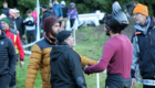 Mit Temperaturen im einstelligen Bereich und immer wiederkehrenden Regenschauern begann der Renntag am 535 Meter hohen Haidackerskopf, wie der Vortag im abendlichen Flutlicht Dual-Slalom endete. Auf die Stimmung der rund 130 teilnehmenden BikerInnen, wie auch freiwilligen Helfenden, Angehörigen und Zuschauenden, wirkte der stündliche Sonne-Wolken-Mix hingegen keinesfalls trübend. Ein Großteil von ihnen bezog bereits am Freitagabend das durch den Ausrichter, dem Skiclub Kleingladenbach, ausgewiesene Camp auf dem Wanderparkplatz. Wer erst am Sonntagmorgen anreiste, wusste sich ebenfalls bestens zu akklimatisieren. Für das am Vormittag angesetzte Pflichttraining hinein in den Dirtsuit, im Sattel sitzend in den Schlepplift einhaken und hinauf zum Startpunkt an der etwa 180 Meter höher gelegenen Bergstation. Bevor die Rennen dort um 14 Uhr starteten, galt es zwei Abfahrten zu absolvieren. Nach Aussage einzelner Fahrer befand sich die im Durchschnitt 17 Prozent steile und 770 Meter lange Strecke dabei im ständigen Wandel. Mit jedem Lauf und Wolkenbruch fanden sie veränderte Bodenverhältnisse, sowie Licht-Schatten-Wechsel vor. Das erschwerte ihnen die Festlegung und das Einfahren einer persönlichen Ideallinie.