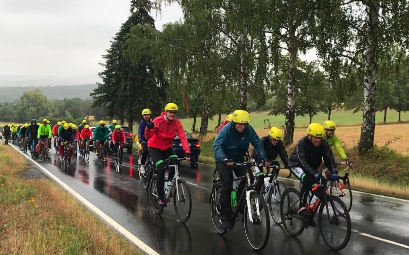 Dass es unterwegs so viel und lange regnete, war zwar eine bedauerliche Tatsache, die aber in den Schilderungen von Wolfgang Rinn, der den Web- und Social-Media-Auftritt der Tour der Hoffnung führt, keine trübende Rolle spielte. „Wir hatten auf dem ersten Teilstück der dritten Etappe bis Großwallstadt Regen was der Himmel hergab. Und nichts desto trotz, einen mega Empfang. Weiter nach Klingenberg und Regen über Regen. Und plötzlich ein Wetterwechsel“.