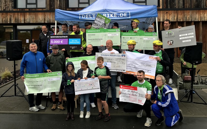 Zum 40. Mal war die Tour der Hoffnung zugunsten krebskranker Kinder unterwegs. Traditionell findet der Auftakt am Geburtsort der Tour in Gießen statt, bevor die weiteren Etappen in andere Regionen führen. Von Ransbach-Baumbach nach Wiesbaden und von Aschaffenburg nach Würzburg ging es in diesem Jahr.