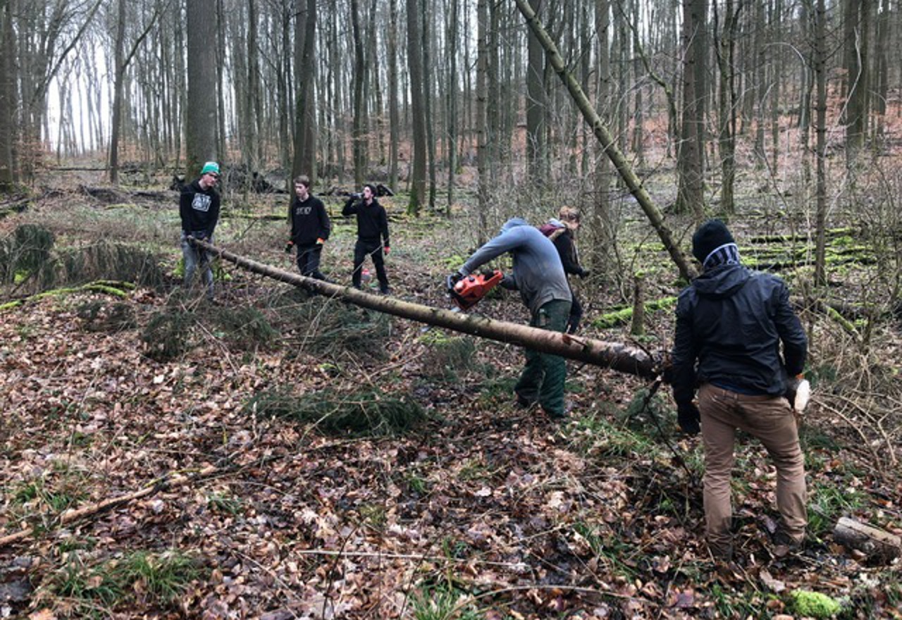 Bis zu 13 Helfer packten bei den ersten Arbeitseinsätzen auf der offiziellen Freeride-Strecke der RSG Gießen und Wieseck am Schiffenberg mit an.