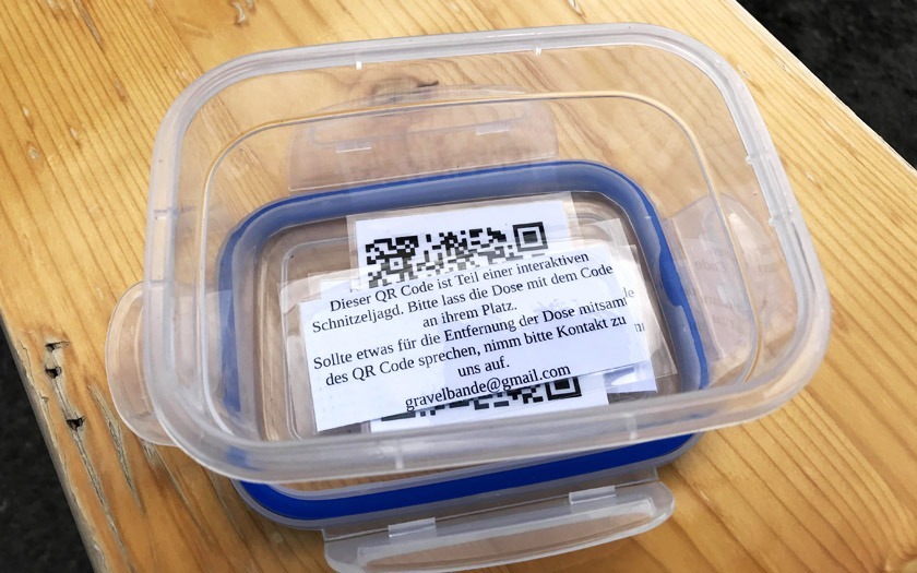 Zwölf Menschen waren der Verlockung der Gravelhunt gefolgt und mit ihrem Fahrrad, Gepäck für den Tag und die Nacht und wahrscheinlich auch mit einer Portion Nervosität am Startort, der Gaia Boulderhalle in Marburg-Wehrda erschienen. Nachdem die Energiespeicher nochmal gefüllt worden waren und man sich kurz kennengelernt hatte, konnte das Abenteuer auch schon beginnen. Im Umkreis von 20 Metern war eine kleine Box zu suchen, in der sich der Code für den ersten Streckenabschnitt befand. Den konnte man mit dem Smartphone scannen und sich so durch die Gravelhunt navigieren lassen. Anhalten, suchen und den Code finden, sollte sich den Tag über noch öfter wiederholen.