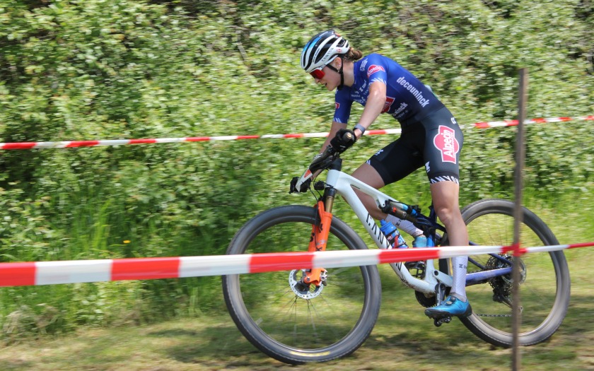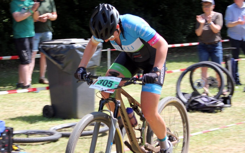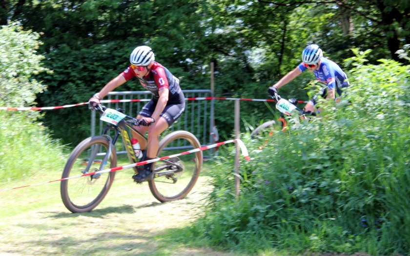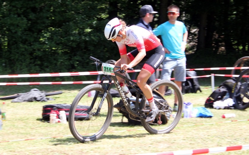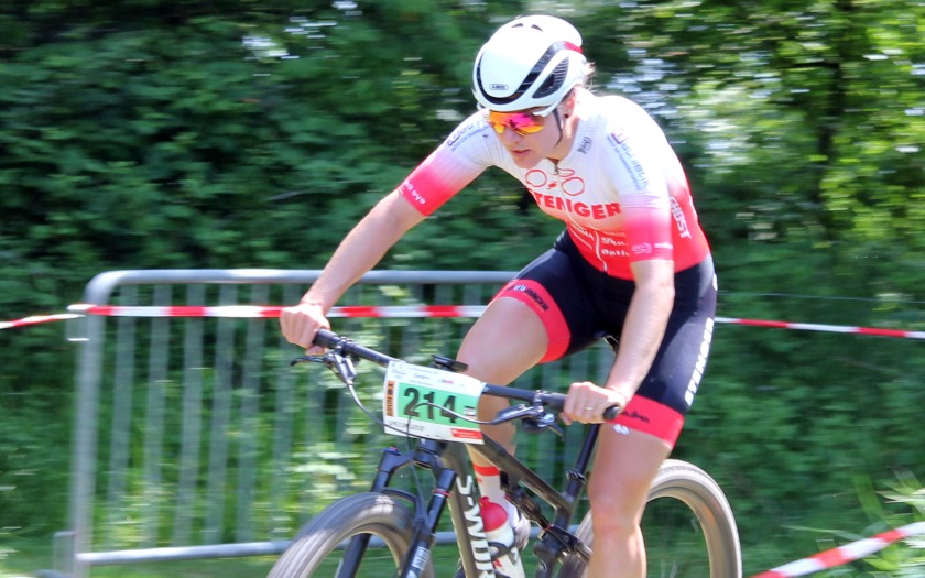Im Rennen der Frauen um die Internationale MTB-Bundesliga setzte sich Nina Benz (TSV Laichingen / Lexware Mountainbike Team) nach einer Startrunde und sechs vollen Runden auf dem anspruchsvollen Kurs mit 20 Sekunden Vorsprung und einem Start-Ziel-Sieg gegen Ronja Eibl (Alpecin-Feix) und Alexa Fuchs (RV Reudern / Stevens MTB Racing Team) durch. Auf Platz zehn schloss Stephanie Frank vom MTBC Wehrheim im Trikot des Stenger-Bike -Team den Renntag ab, der sich für die gebürtige Mittelhessin aus dem Vogelsberg wie ein Heimrennen angefühlt haben dürfte. Sie freute sich über den Besuch der Familie an der Strecke und unterwegs immer wieder ihren Namen und Anfeuerungen zu hören. So erging es auch Michelle Luft vom TGV Schotten, die das Trikot des Team HWG Gedern auf Platz zwölf ins Ziel brachte. Dass die Spitzefahrerinnen quasi in einer anderen Liga fahren, sei ihr bewusst gewesen. Beim Heimrennen am Start zu stehen, sei aber ebenso selbstverständlich gewesen. Und das anspruchsvolle Rennen dürfte für sie eine gute Vorbereitung auf den 19. Vulkan Mountain-Bike-Marathon gewesen, bei dem es am 11. Juni in Schotten-Rudingshain auch um die Hessenmeisterschaft im MTB XCM geht. Ihr erster Gang im Ziel führte Michelle Luft direkt zur Box ihres Teams um ihren männlichen Teamkollegen aktuelle Streckeninfos für ihr noch folgendes Rennen zu geben.