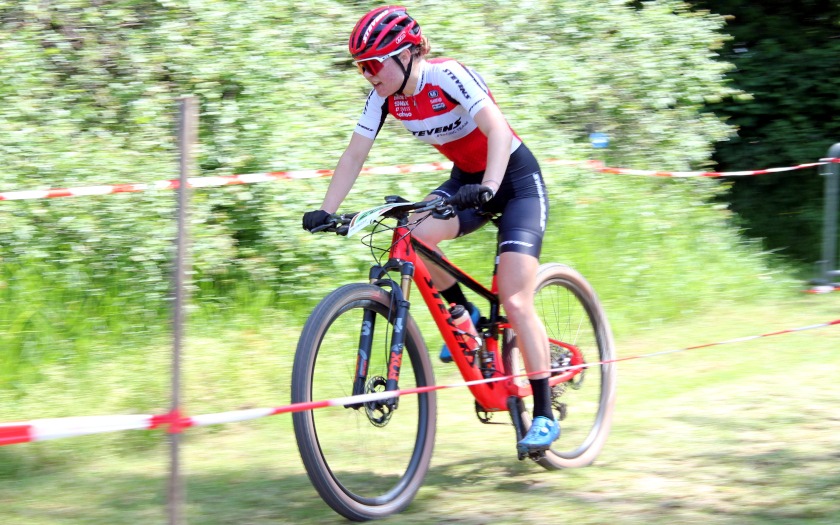 Eine imposante Leistung bot Juniorenfahrerin Carla Hahn (TSV Benediktbeuren Bichl / Lexware Mountainbike Team). Sie dominierte das Rennen der zeitgleich mit den Frauen gestarteten Juniorinnen und gewann nach einer Startrunde und vier vollen Runden mit 5:22 Minuten Vorsprung vor Natalie Kaufmann (RSV Team Auto Riedel Schwarzenberg / Stevens MTB Racing Team) und Lina Huber (TSG Münsingen / B&W Merida Team).