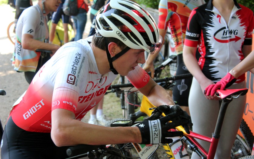 Besonders auf das Rennen in Gedern gefreut haben dürfte sich Noah Jung von der RSG Gießen und Wieseck, der das neue Teamtrikot von Delta-bike.de aus Wettenberg und Wieseck dort erstmals in dieser Saison im Rennen trug. Jung hatte sich erst kürzlich bei einem Trainingssturz an der Schulter verletzt und musste seinen Saisonstart verschieben. Die ersten Rennen der Int. MTB-Bundesliga in Krumbach / Obergessertshausen im März und im April in Heubach hatte er dadurch verpasst und musste sich entsprechend weit hinten in der nach Gesamtwertung erfolgten Startaufstellung zu seinem Saisondebüt einreihen. Noch etwas weiter dahinter Stand Vereinskollege Niclas Zimmer im Trikot des Stenger-Bike-Team. Einen ausgesprochen guten Start erwischte der Gießener Student Rico Libesch, der für den ausrichtenden TGV Schotten und das Team HWG Gedern fährt. Entsprechend lautstark war die Begeisterung auf der Startrunde und den anschließenden sieben vollen Runden.