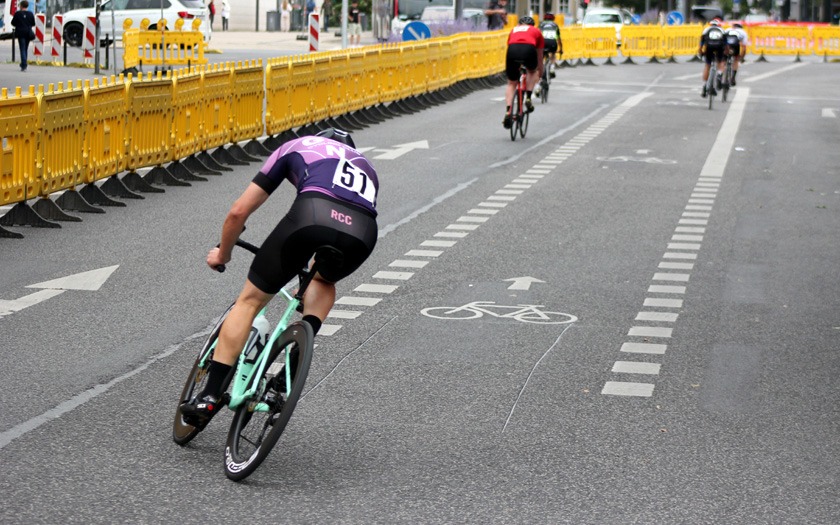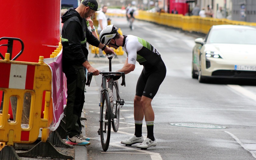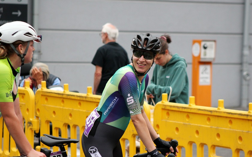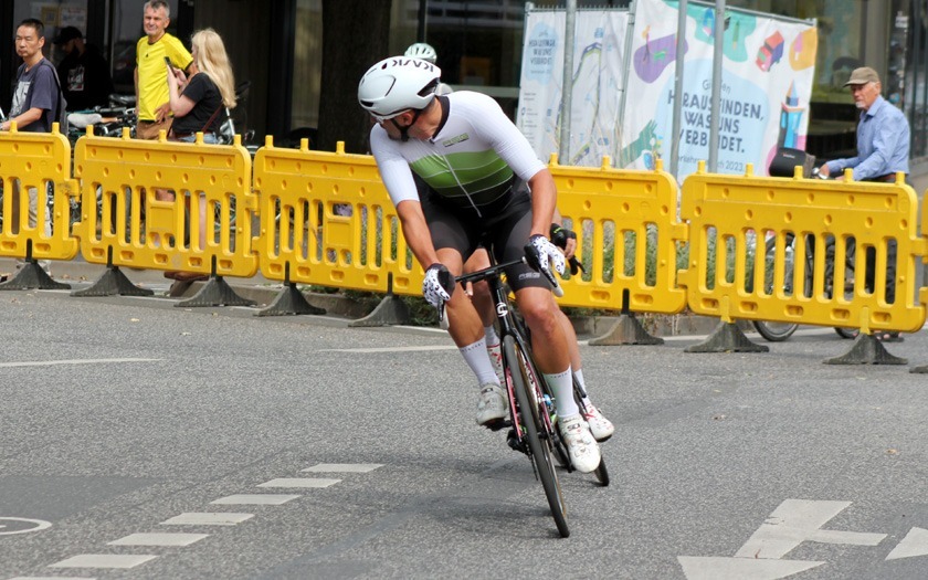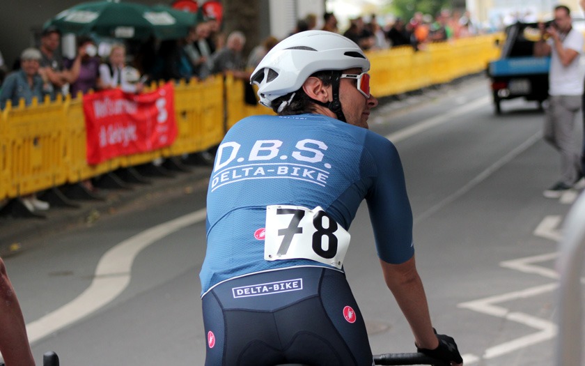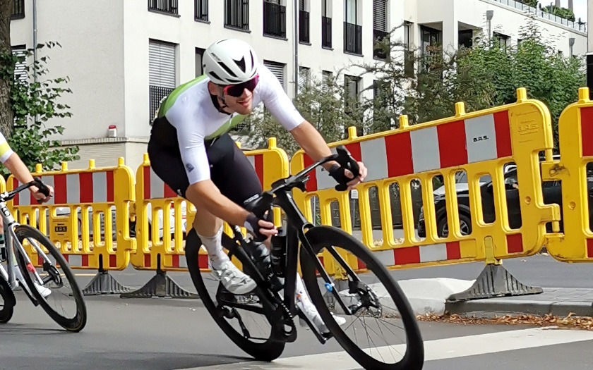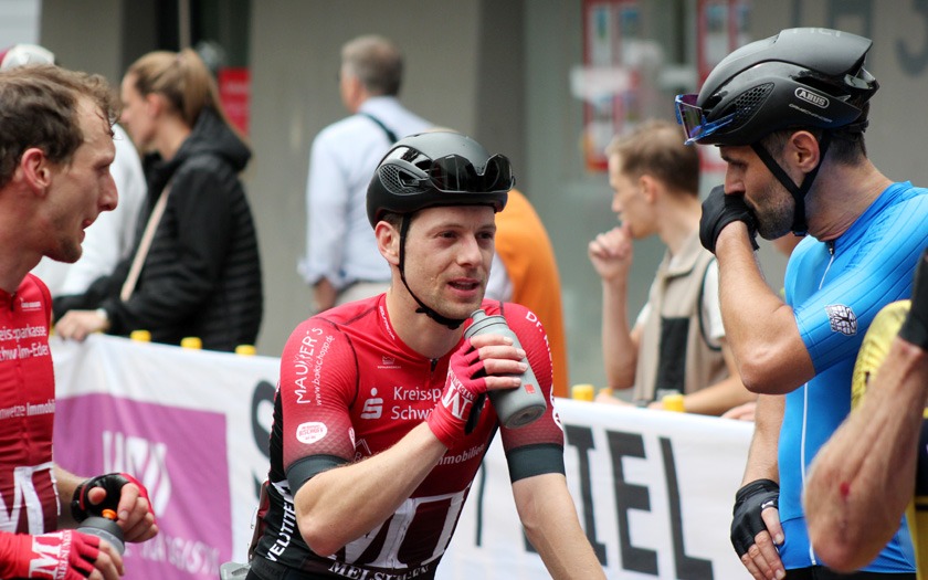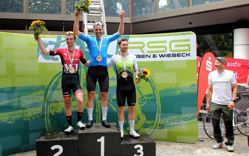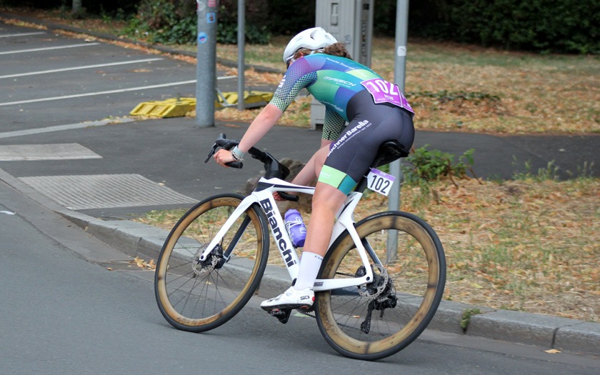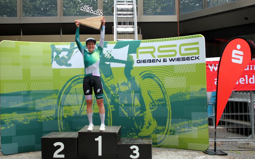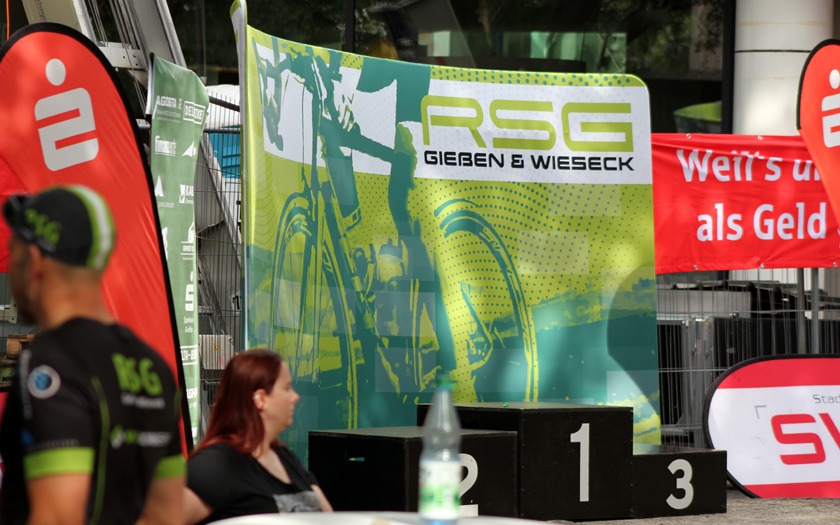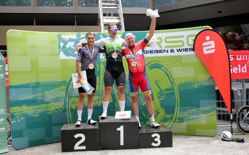 Während die „Holzmedaille“ sonst für Rang vier und das knapp verpasste Podium steht, freute sich Schütz auf Rang drei sichtlich über die aus Holz gefräste, sehr sehenswerte Medaille, die er so in seiner großen Trophäensammlung aus früheren Jahren noch nicht haben dürfte. Auf Rang acht holte Sebastian Schubert, der ebenfalls vom Sturz betroffen war, ein achtbares Topten-Ergebnis für sich und die ausrichtende RSG Gießen und Wieseck. Die hatte mit zwei separaten Hobbyrennen, als offene Stadtmeisterschaft, jeweils für Frauen und Männer offensichtlich einen Treffer in ihrer Liste an kleinen und großen Neuerungen gelandet.