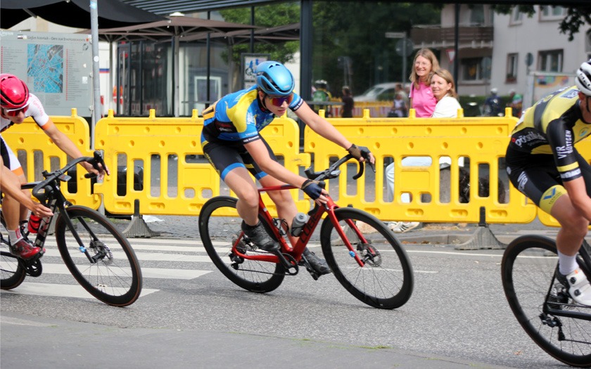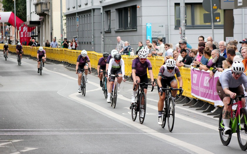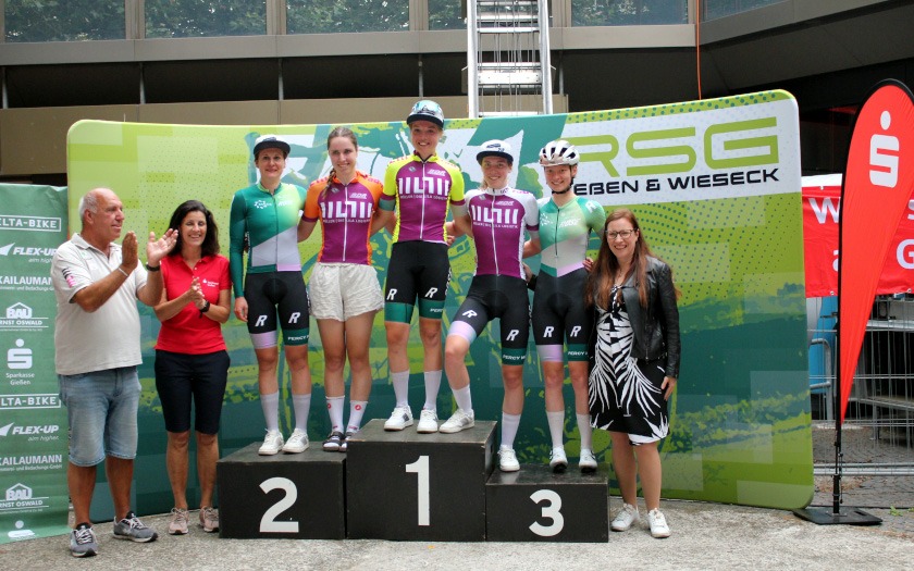 Für Aufmerksamkeit sorgten auch die Fahrerinnen des Team Baden-Forchheim, die in Nina Schmidt eine Wahl-Gießerin in ihren Reihen haben, die in Gießen wohnt, studiert und arbeitet – und eben auch sehr schnell Rad fährt. Mit ihren Teamkolleginnen konnte sie einige Attacken setzen, die andere Fahrerinnen und ihre Mannschaften zur Gegenwehr aufforderten und sie aus sicher geglaubter Position zum arbeiten animierten. Dass der formierte Sprintzug des Team Baden-Forchheim im Finale zwischen überrundeten Fahrerinnen nicht zu voller Fahrt kam, wurmte die Mannschaft noch eine Weile nach dem Zieleinlauf. Sandra Geyer auf Platz sechs war beste Fahrerin des Teams und die Gießenerin Nina Schmidt kam auf Platz 19 der 57 gestarteten Frauen und Juniorinnen. Bestplatzierte Fahrerin der PZ Gießen Racing Team, der Rad-Bundesliga Neulinge von der RSG Gießen und Wieseck, war Janina Morin Bender auf Rang elf. Mit ihrer Mannschaft ließ sie das Heimrennen des Teams und das Doppel der Rad-Bundesliga in Hessen in gemeinsamer Runde ausklingen. Katharina Fox übernahm in Gießen das Führungstrikot der Müller – Die lila Logistik Rad-Bundesliga, die noch fünf weitere Wertungsrennen im Saisonverlauf vor sich hat.