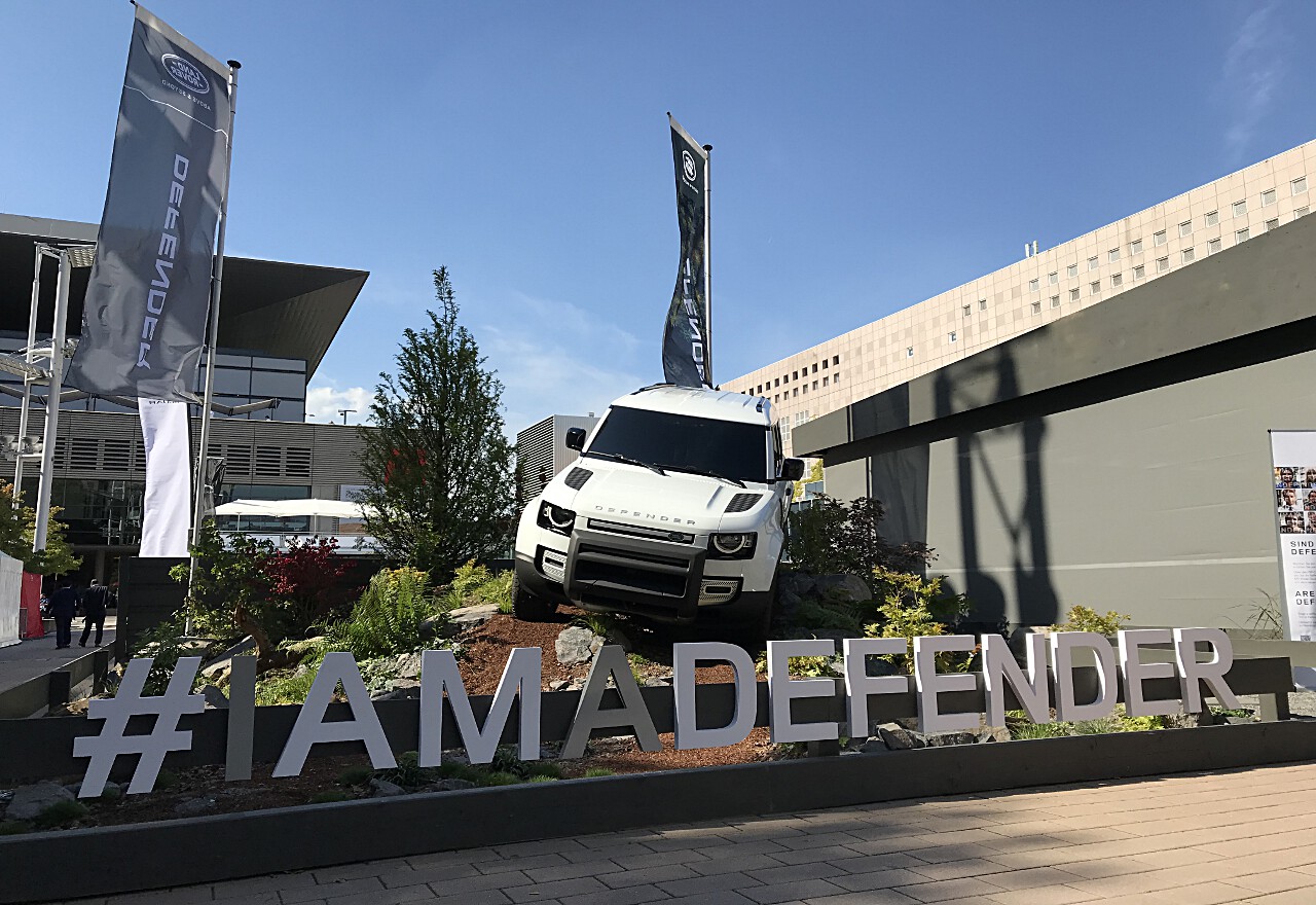 Ab ins Gelände: Die Präsentationsfläche des neuen Landrover Defender würde sich auch gut als Fahrradtrial-Trainingsgelände eignen. Foto: Stephan Dietel