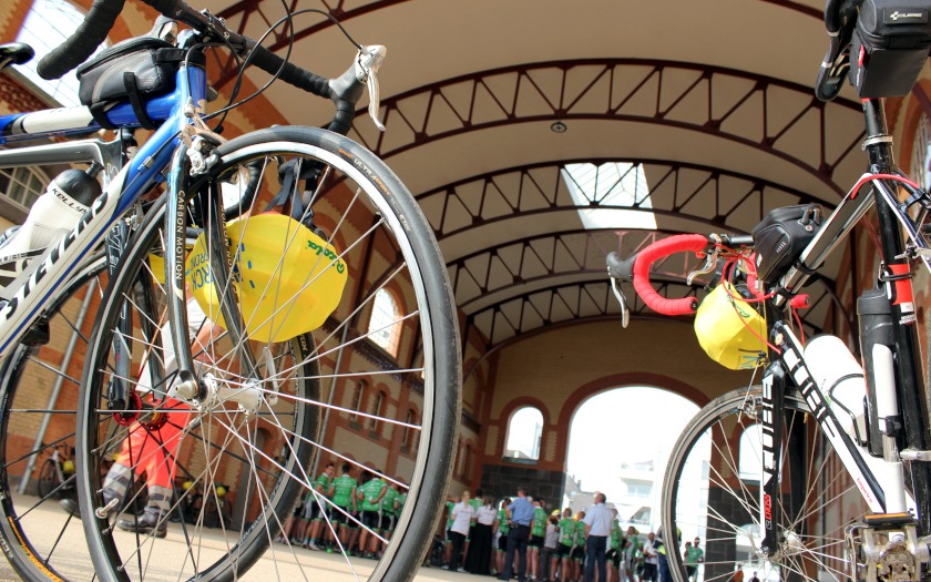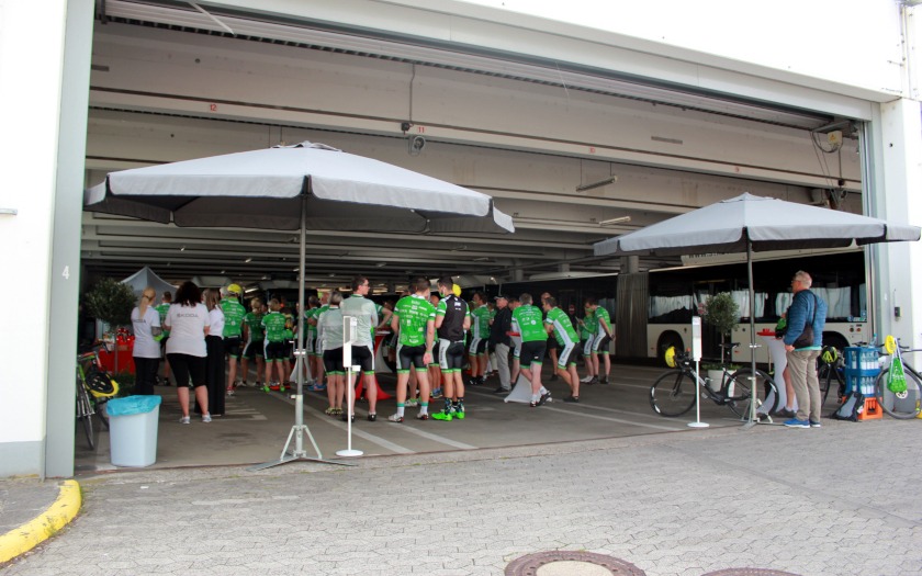 Dass es im Leben, wie auch beim Wetter, nicht nur Sonnenschein sondern auch trübe Tage gibt, wurde den Tour-Teilnehmern vor dem Start an den Stadtwerken Gießen schmerzlich in Erinnerung gerufen: Ihr langjähriger Freund und Förderer, der Fernsehmoderator und Sportreporter Werner Damm, war am Freitag (20.08.) an den Folgen eines Herzinfarktes gestorben. Moderatorenkollege und Freund Andreas Hieke, der die Tour der Hoffnung ebenfalls schon viele Jahre begleitet, überbrachte die traurige Nachricht in seiner Ansprache an die Tour-Familie und gedachte Werner Damm in einer Schweigeminute. Der Tod von Menschen sei für die Tour der Hoffnung bei ihrem Kampf gegen Krebs zwar stets präsent, doch treffe er sie immer schmerzlich. Mit dem traditionellen Reisesegen wurden die Radfahrerinnen und Radfahrer in der Wagenhalle der Stadtwerke Gießen auf die Strecke geschickt.
