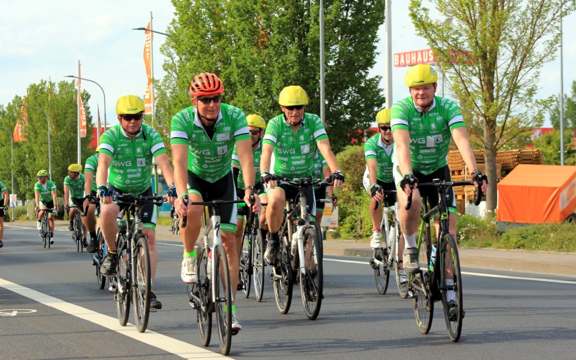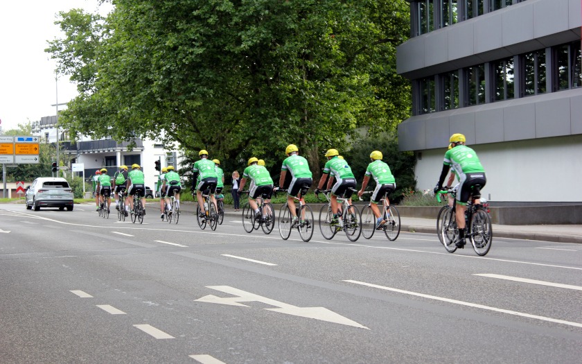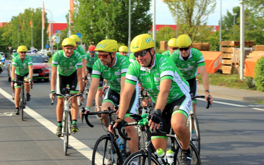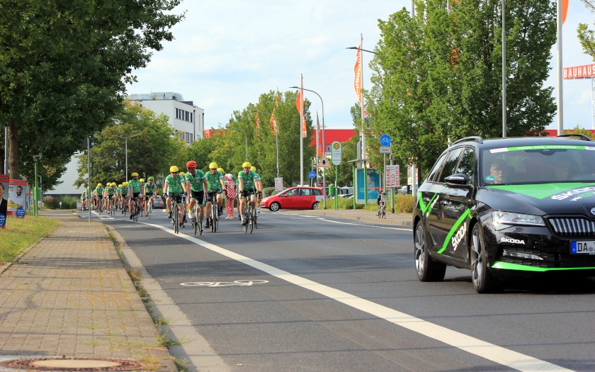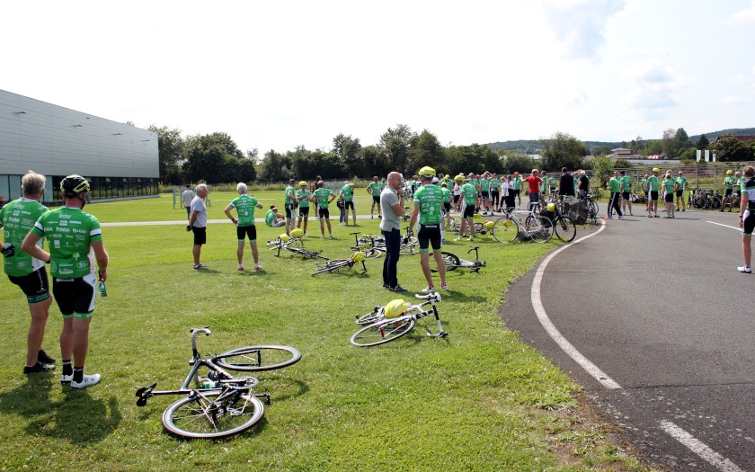 Pünktlich um 9.30 Uhr setzte sich der Tross der Tour der Hoffnung für seine traditionelle Fahrt durch Mittelhessen in Bewegung. Anders als üblich, war die Fahrt rund um Gießen aber nicht der Auftakt für eine Mehrtagestour, die nach dem Prolog dann ihre Fahrt in einer vorher bestimmten Region in Deutschland fortsetzt. Es musste auch diesmal, wie schon im Vorjahr, in Folge der Corona-Pandemie nur eine Tagesfahrt bleiben, die mit rund 55 Teilnehmenden auch deutlich kleiner als in anderen Jahren war.