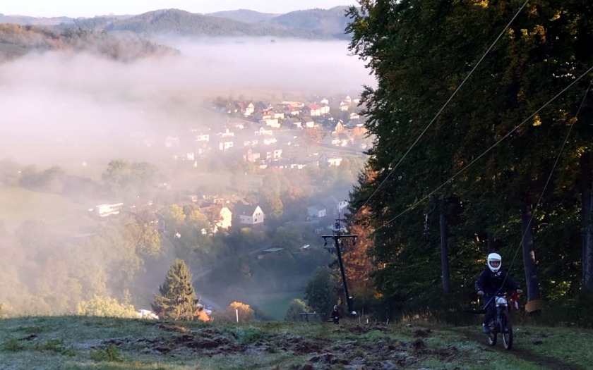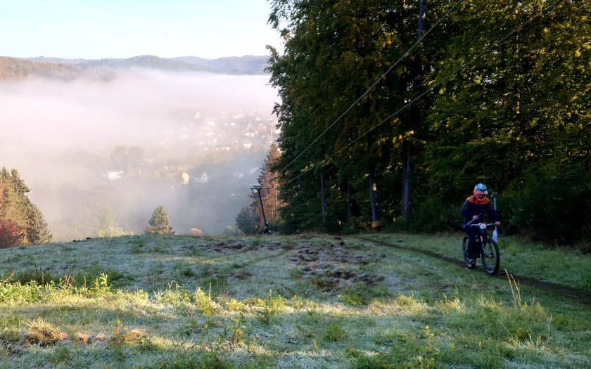 Wie steil der Berg ist, beeindruckte auch unsere Redakteure Tobias Zappe und Stephan Dietel, die zur Berichterstattung, für Fotos und ein Video vom Renntag mit den Teilnehmenden im Gelände unterwegs waren. Und tatsächlich zählt Kleingladenbach zu den steilsten Ski-Gebieten in Hessen. Downhill-Rennen in Hessen gab es in den zurückliegenden Jahren einige, doch habe sich über einen langen Zeitraum keine Möglichkeit geboten, eine Hessenmeisterschaft in dieser Disziplin auszufahren – auch wegen personeller Vakanzen, schilderte Dr. Peter Pagels vom Hessischen Radfahrerverband und dem mittelhessischen Radsportbezirk Lahn, in dem Kleingladenbach liegt.