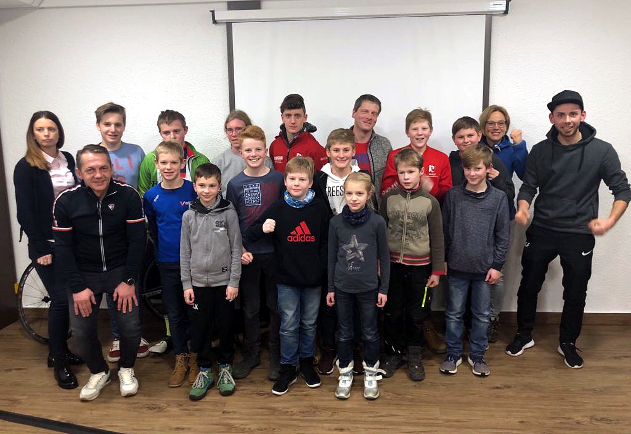 Kinder, Jugendliche und Erwachsene folgten aufmerksam den Ausführungen von Trainer Sven Fischbach was sie in der Saison 2019 so erwartet. Termine, Material, Taktik, Trainingsablauf und eine Menge mehr standen auf dem Programm. Ergänzt wurde das Treffen um Aufklärungsarbeit in Themen wie Versicherungsschutz und Vereinsleistung, damit auch die Eltern informiert sind und ihren Nachwuchs gut aufgehoben wissen. Bereits am Samstag (02.02.) wird der erste von zwei Trainings-Tagesworkshops zur Saisonvorbereitung in Kleinlinden durchgeführt. „Wir befinden uns weiterhin auf Wachstumskurs und freuen uns über drei neue Fahrer. Damit sind wir von der U11 bis zur U19 top aufgestellt“, zeigte sich Wolfang Rinn, der 1. Vorsitzende der RV Gießen-Kleinlinden, erfreut über die Entwicklung des Rennsports im Verein. (sd/wr | Foto: Wolfgang Rinn)