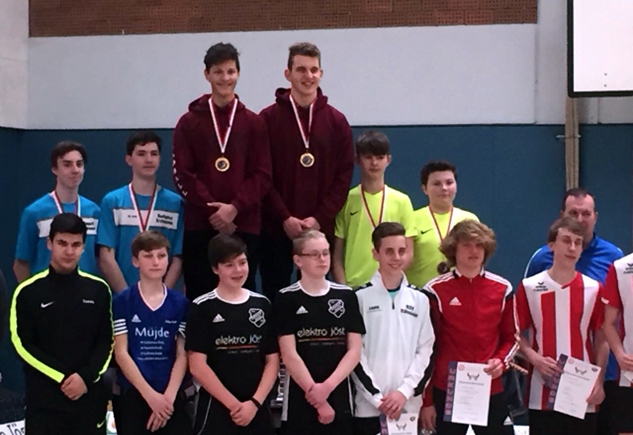 Die Krofdorfer Finn Leven Grolle und Justin Klein hatten einen schlechten Tag erwischt: Dem einen mangelte es an der Kondition, der andere spielte wenig mannschaftsdienlich, so dass sie am Ende mit dem dritten Platz zufrieden sein mussten. Gegen Laubach verloren sie 1:3. Der ersatzgeschwächte Reideburger SV wurde 6:1 besiegt, Kemnat II mit Glück 2:0 bezwungen. Im letzten Spiel gegen Weil im Schönbuch passte dann nichts mehr zusammen, so dass sie 2:4 unterlagen. Wenn nicht an der Kondition und der Disziplin gearbeitet wird, dürfte im Halbfinale in diesem Jahr Endstation sein. (mw | Foto: Martin Wagner)