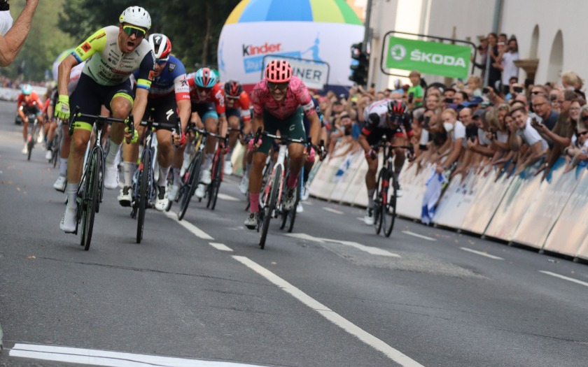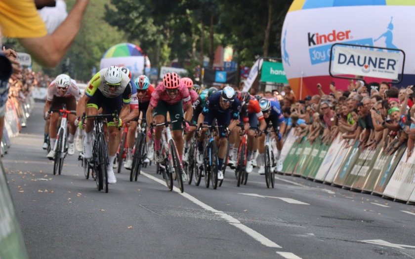 Es blieb die gesamte Runde über hektisch, bis 1,5 Kilometer vor dem Ziel Tony Gallopin (Trek-Segafredo) quasi über den Radweg bei rund 60 Stundenkilometern der jagenden Meute davon galoppierte. Sollten sich seine Gedanken schon mit dem Etappensieg befasst haben, so wurden sie am Ende der Biegenstraße jäh gestoppt. Der Ausreißer war wieder eingeholt und der Sprint auf den letzten 300 Metern zum Ziel eröffnet. Während der zurückgeholte Ausreißer nach hinten durchgereicht wurde, nutzte Alexander Kristoff seine Chance im Gemenge und schnappte sich mit der höchsten Endgeschwindigkeit den Tagessieg. Marburg schien ein gutes Pflaster für den Norweger zu sein, denn als im Jahr 2019 die Deutschland Tour hier gestartet wurde und nach Göttingen führte, hieß der Sieger ebenfalls Alexander Kristoff. Er wisse nicht, warum ihm deutsche Rennen entgegenkämen. Vielleicht läge es an den nicht so langen Anstiegen. Oder an den Rundkursen, so wie die Champs-Élysées. Das bevorzuge er, weil man als nicht-heimischer Fahrer die Chance habe, die Strecke kennenzulernen. Er habe gute Erinnerungen an deutsche Rennen – an Frankfurt, Hamburg und an Marburg.