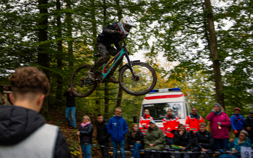 Stärker als sein Schlüsselbein war der Wille von Anton Orthey, das letzte Rennen des Super Gravity Cup mitgefahren zu sein, um die Gesamtwertung der Rennserie gewinnen zu können. Genügend Punkte für den Gesamtsieg hatte er im Saisonverlauf schon eingefahren. Nachdem er sich beim Training in Kleingladenbach aber das Schlüsselbein gebrochen hatte, war an eine komplette Abfahrt aber nicht mehr zu denken. So blieb es nach dem Start bei den wenigen Metern bis zur ersten Kurven und einem aufgenommenen, aber nicht zu Ende gebrachten Rennen. Für den Sprung auf des Siegerpodest der Gesamtwertung war die Verletzung dann aber nicht hinderlich und sein Wochenende beim Super Gravity Cup in Kleingladenbach einen zufriedenen Abschluss. Das damit erreichte Saisonende lässt der Verletzung jetzt zu verheilen. Einige weitere Stürze machten deutlich, wie schmal der Grad zwischen Fahrspaß und Verletzung beim Fahren im Grenzbereich ist. Ein ernster Sturz im Finale des Herren sorgte für 50 Minuten Unterbrechung des Rennens und bei den Zuschauenden und Aktiven für Wünsche einer schnellen und vollständigen Genesung.