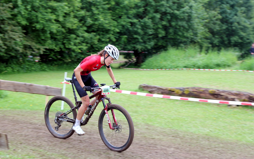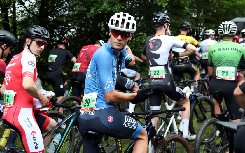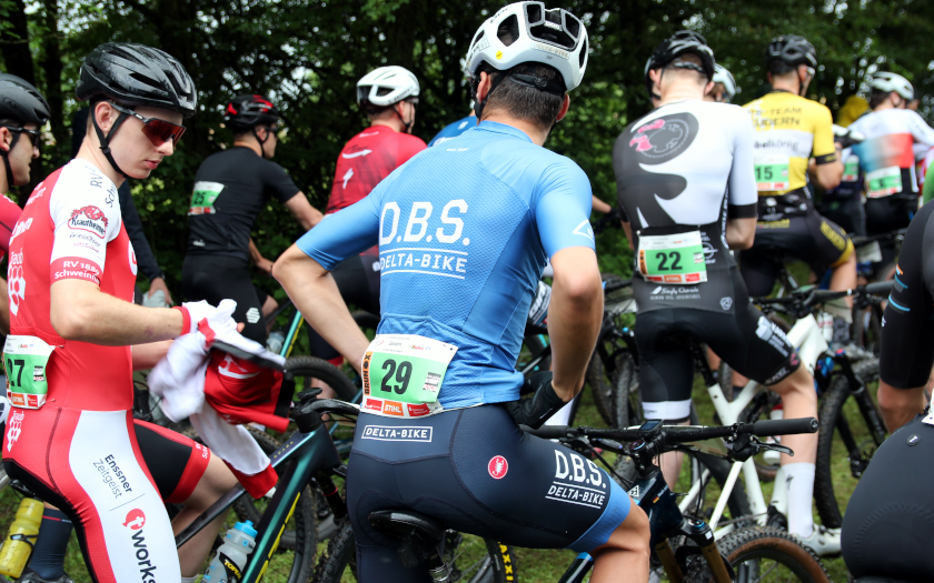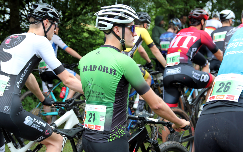Noah Jung von der RSG Gießen und Wieseck, im Trikot des Team Delta-Bike.de, startete beim Bundesliga-Rennen im Mountainbike Cross Country in Saalhausen, was auch als kleiner Vorgeschmack auf die bevorstehende Deutsche Meisterschaft in dieser Disziplin gesehen werden konnte. Zu fahren waren sieben lange Runden.