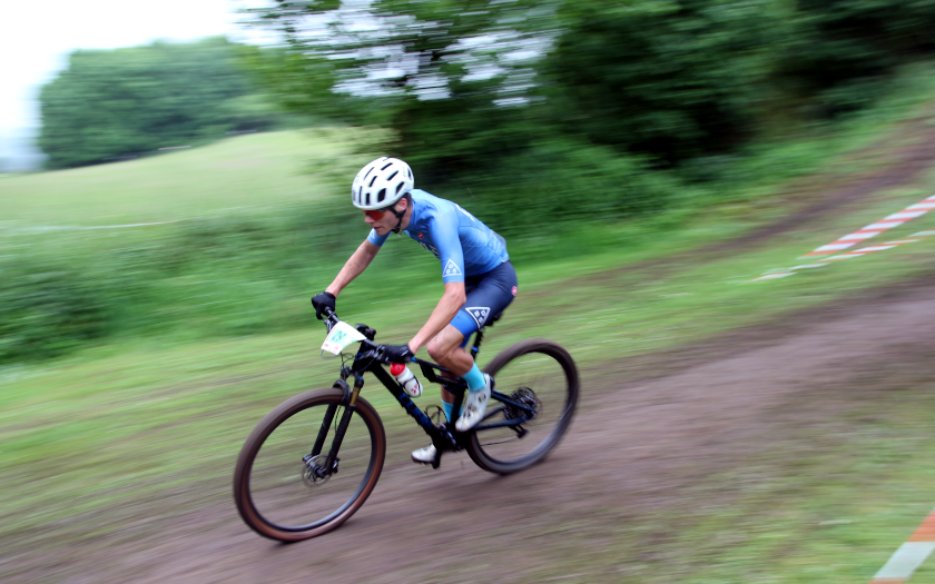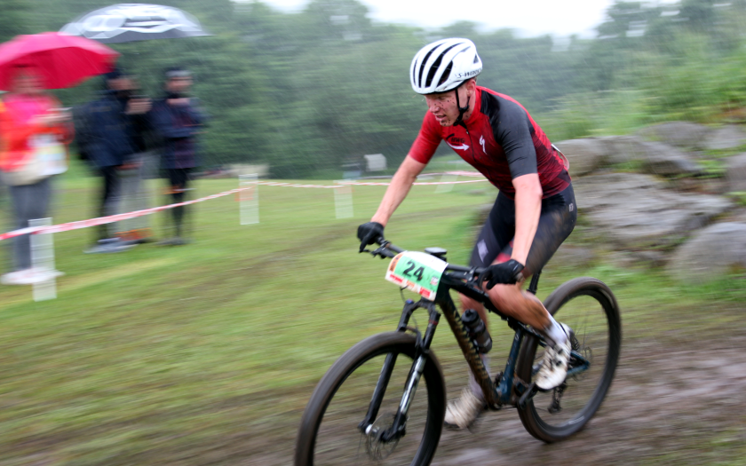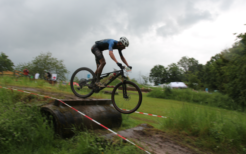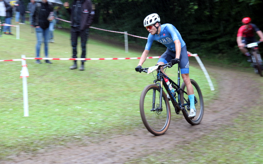 Für Noah Jung von der RSG Gießen und Wieseck war das Rennen in Gedern zugleich der Einstieg inmitten der laufenden Bundesliga-Saison. Und mit dem intensiven Regenwetter war er ganz in seinem fahrerischen Element. Von Startplatz 29 ging er ins Rennen, da er aktuell noch keine Weltranglisten-Punkte im olympischen Cross-Country (XCO) eingefahren hat – dafür aber reichlich Punkte im Marathon (XCM) durch seine Teilnahme am Cape Epic Etappenrennen in Südafrika. Neben den nassen Bedingungen, bei denen Noah Jung schon häufig besondere Stärke zeigen konnte, gefiel ihm die 3,2 Kilometer lange Strecke in Gedern, die durch viele Richtungswechsel und technisch anspruchsvolle Up- und Downhill-Passagen geprägt war. „Das schnelle Überholen am Start vor den Singletrails klappte bei mir leider nur mäßig gut. Runde für Runde konnte ich an den breiteren Stellen des Rennens einige Fahrer überholen und auf neue Gruppen und Fahrer auffahren. Die nassen Bedingungen spielten mir positiv in die Karten“. Platz acht war ein Resultat, das den in Fellingshausen lebenden, gebürtigen Wiesecker zufrieden mit dem Gederner Rennen abschließen ließ. Die eingefahrenen 14 UCI-Punkte sorgten im nächsten Rennen für einen noch besseren Startplatz.