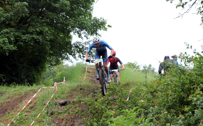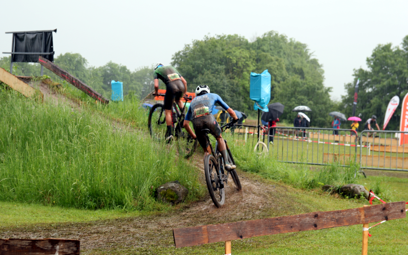 Im Kampf um Platz zwei gab es viele Positionskämpfe zu beobachten. Georg Egger (Orbea Leatt Speed Company) war schon in der ersten Runden an der Passage „Welcome to hell“ bei den schweren Bedingungen gestürzt und verletzte sich am Ellenbogen und Knie. Er verließ danach umgehend die Rennstrecke. Und auch Niklas Schehl (Stop&Go Marderabwehr) musste das Rennen vorzeitig beenden, Tobias Steinhart (Dowe-Simplon), Tobias König (Stevens) und Alex Bregenzer (RV Viktoria Wombach) duellierten sich schließlich um die zwei verbliebenen Podiumsplätze – mit dem besseren Ende für Steinhart und Bregenzer.