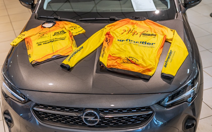 Als optisch auffälligste Neuerung gibt es orange Farbeverläufe auf dem traditionell Gelb basierten Trikot. „Wir wollten etwas frischeres, neueres machen und haben mit unseren Nachwuchsfahrern auch ein jüngeres Publikum. Gelb als Grundfarbe des Vereins musste aber bleiben. Wir hatten eine gute Designerin und konnten uns nach zwei, drei Entwürfen schnell entscheiden“, gab Ron Pfeifer einen Einblick in den Entwicklungsprozess des neuen Trikots. Es stammt von der Marke KALAS, aus dem Sortiment von Pfeifers Arbeitsgeber, der RA-CO GmbH in Erfurt. Ebenfalls neu: Es gibt jetzt auch einheitliche Fahrrad-Trinkflaschen des Vereins, die Nicolai Pitzer, früher selbst als Fahrer im Team und heute ein Sponsor, mit Rennsport-Fachwart Andreas Schulz entwickelt hat. Ein weiteres Kontingent an Trinkflaschen stellte auch Bernd Pfeiffer von Hipf Race Bikes zur Verfügung, so dass es der RSG Buchenau jetzt nur noch an Veranstaltungen und Wettbewerben fehlt, um das neue Outfit nicht nur im Training auf den Straßen des Hinterlandes, sondern auch vor Publikum zeigen zu können.