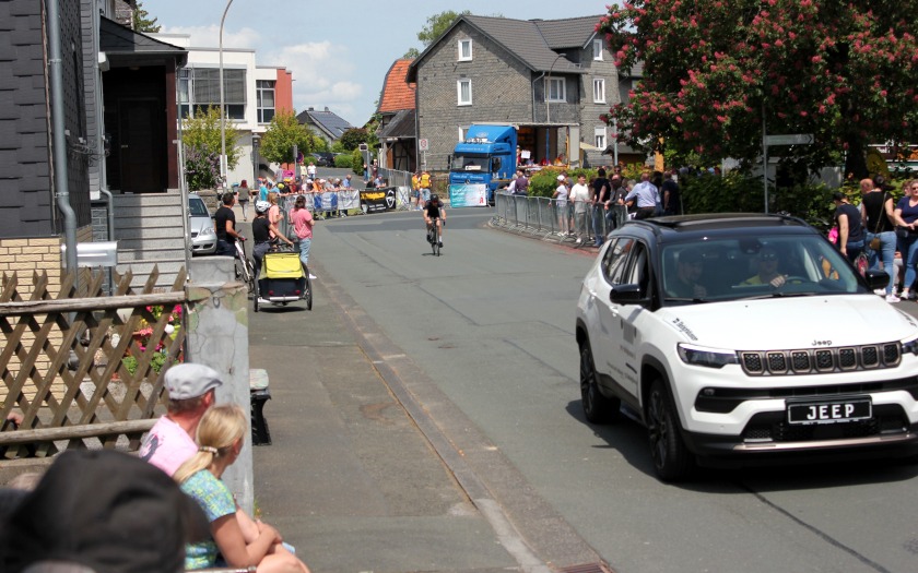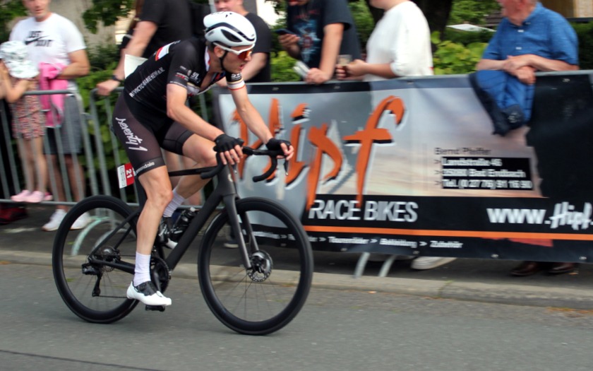 Paula Weg war im Rennen der Frauen Elite mit Tageslizenz der RSG Buchenau unterwegs und gab damit ein kurzes Comeback im Wettkampf-Sattel, nachdem sie ihre aktive Laufbahn schon länger beendet hat. Ein nicht ganz optimaler Start für die Dillenburgerin und die Teilung des gemeinsamen Fahrerfeldes mit den Masters-Klassen hatte zur Folge, das es eine vordere Gruppe mit der späteren Siegerin, Lisa Weber vom RSV Osthelden, gab. Dahinter lieferten sich nach 40 Runden (44 km) Meike Kohlenberger (VC Darmstadt) und Anja Schneidenbach (RVG Rockenberg) einen packenden Sprint im Fotofinish, bei dem die Fahrerinnen selbst nicht wussten, wie der Kampf um Platz zwei und drei ausgegangen war. Hinter der schließlich drittplatzierten Anja Schneidenbach wurde Paula Weg zufriedene Vierte und sie hatte viel Spaß bei ihrem Heimrennen. Am besten besucht war der Streckenrand und der angrenzende Park zum Fette-reifen-Rennen für Kinder und zum Rennen für Jedermann und Jederfrau. Ein Grund dafür dürfte auch der Start von Julius Hoffmann von der RSG Buchenau gewesen sein, dessen Namen man sehr viel bei der Anfeuerung der Zuschauenden hörte. Den Sieg schnappte sich Christian Neidhart nach einer Flucht im Alleingang.
