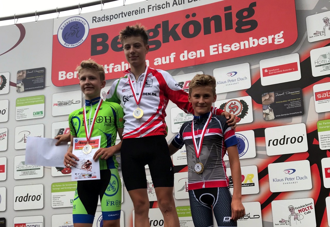 KIRCHHEIM – Frische Medaillen im Bergzeitfahren gab es in dieser Saison auch für einige mittelhessische Fahrer. Um Hessenmeister zu werden waren 5,1 Kilometer und 351 Höhenmeter am Eisenberg bei Kirchheim-Gersdorf zu absolvieren.