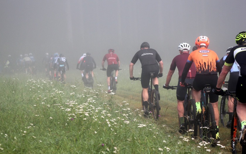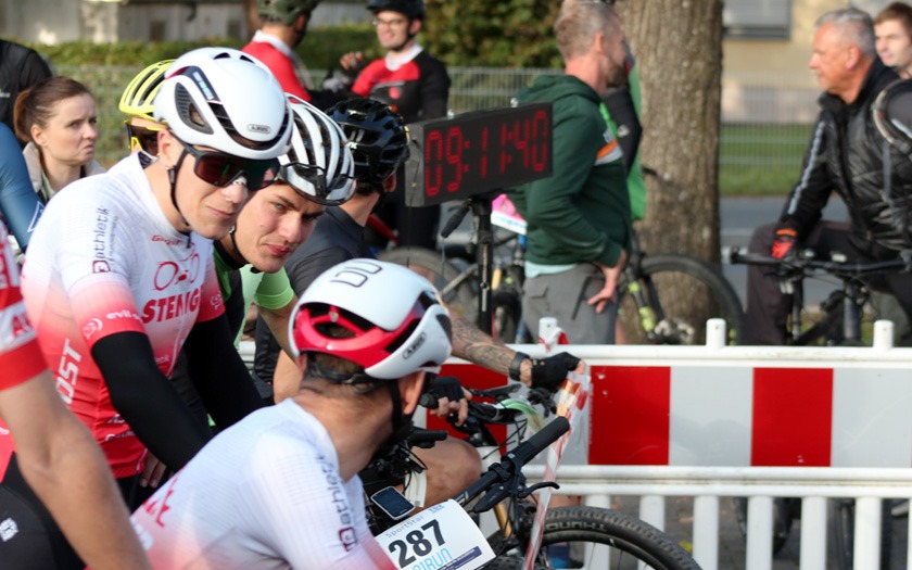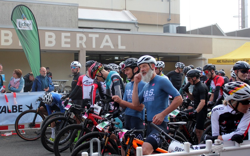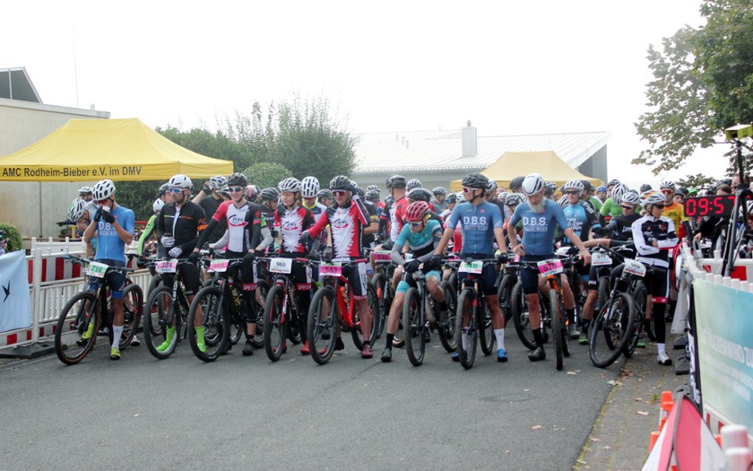 Noch wenige Sekunden bis der 14. Dünsberg-Bike-Marathon startet: Um 9 Uhr wurde mit den Fahrern der Langstrecke die erste Rennklasse losgelassen - das freute auch den ausrichtenden AMC Rodheim-Bieber im Jahr der Corona-Pandemie ganz besonders. Foto: Stephan Dietel