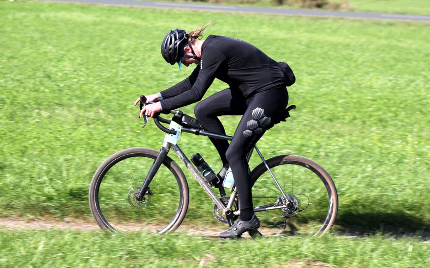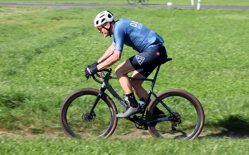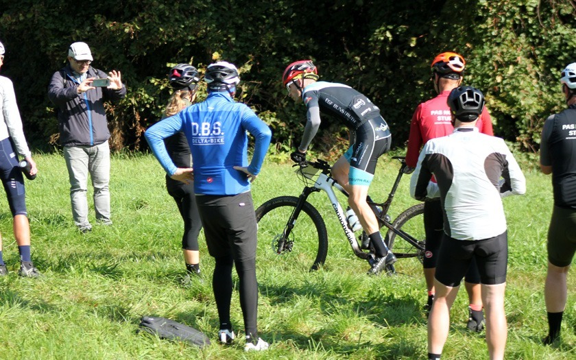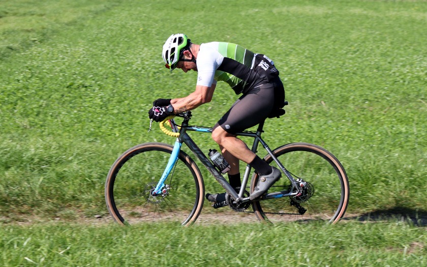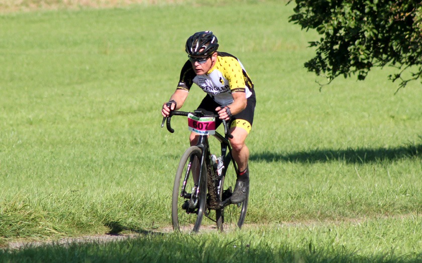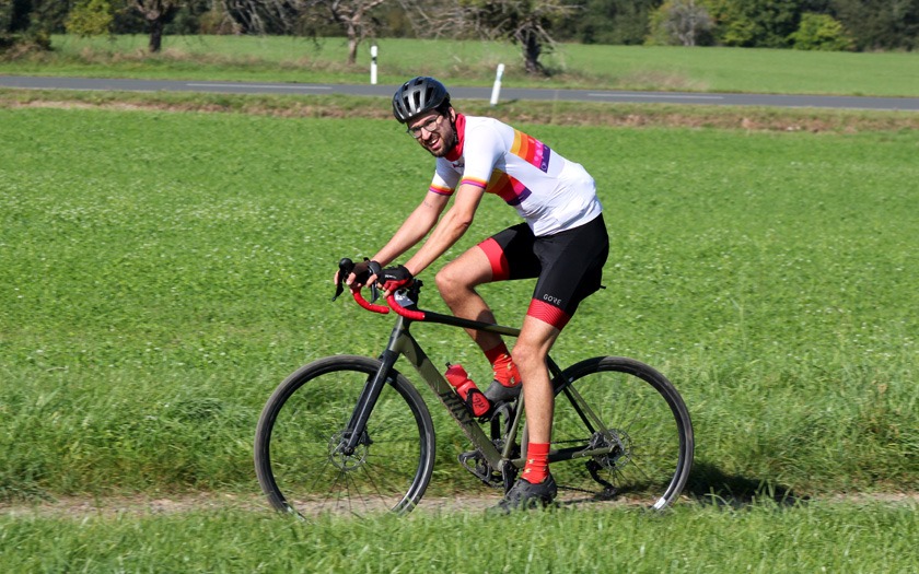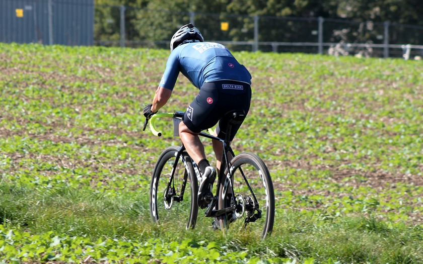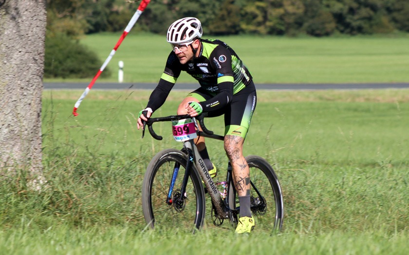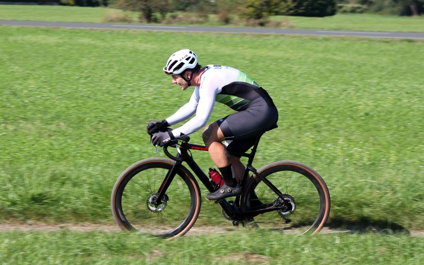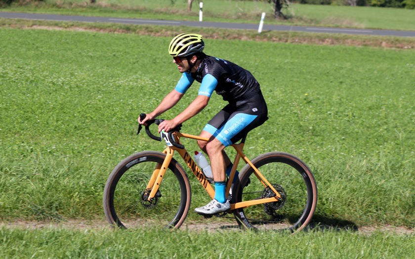 In Vorbereitung auf die Radcross-Saison: Thomas Hockauf von der RSG Gießen und Wieseck absolviert im Trikot des Team DELTA-BIKE.DE einen zufriedenen Formtest für die beginnende Querfeldein-Saison. Foto: Stephan Dietel