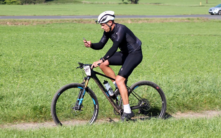 Biken statt berichten: Radsportnachrichten.com-Redakteur Tobias Zappe nahm den Dünsberg-Bike-Marathon selbst unter die Räder. Foto: Stephan Dietel