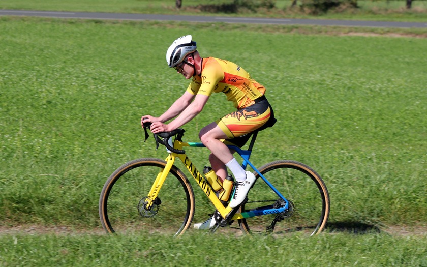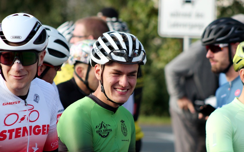 Genoss es, endlich wieder einen Wettkampf fahren zu können: Der Atzenhainer Thorben Jost kurz vor dem Anstieg zum 498 Meter hohen Dünsberg. Foto: Stephan Dietel