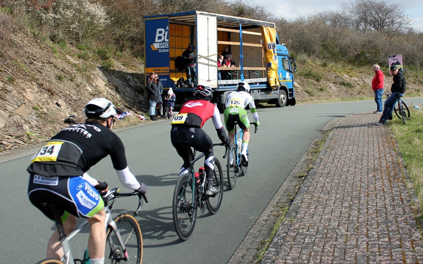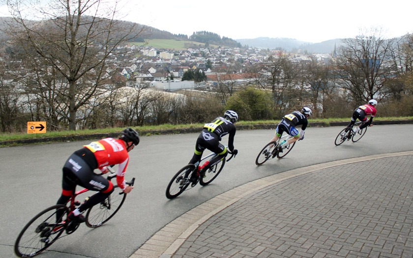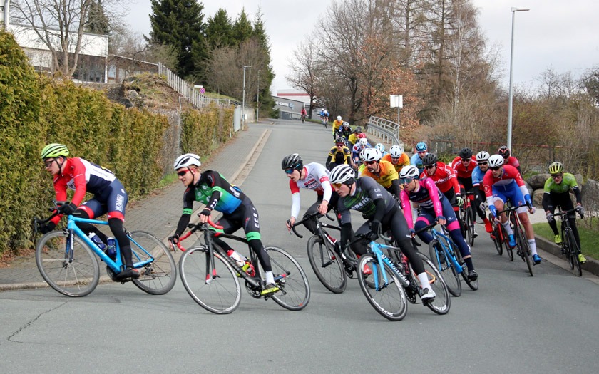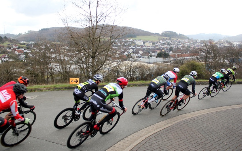 Den Auftakt in den ersten hessischen Renntag der neuen Saison machte das Rennen der Männer Amateure über 30 Runden auf dem zwei Kilometer langen Rundkurs, der über die Distanz von 60 Rennkilometern zermürbende 1.200 Höhenmeter zu bieten hatte. Gegenwind auf den Flachstücken, zahlreiche Kurven und eine rasante Abfahrt verliehen dem Saisonauftakt noch weiter an Würze.