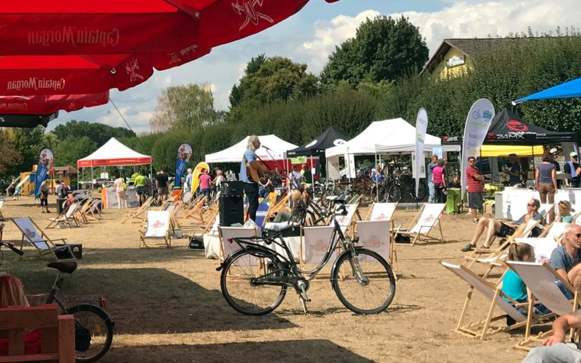 Zum Auftakt in Maintal traf man sich natürlich am Main. Die Openair-Lounge MAIN KULTUR bot dafür zwischen Radweg und Uferpromenade den passenden Rahmen. Organisationen, Firmen und Vereine präsentierten Themen rund ums Rad und die bewusste Alltagsmobiltät. Mit Blick aufs Wasser war pausieren, informieren oder diskutieren ausdrücklich erwünscht. Maintals Bürgermeisterin Monika Böttcher freute sich zur Eröffnung über viele Besucher und ganz besonders über eine Delegation Radfahrer aus Hanau: Dort sammelt man bereits seit einigen Tagen Fahrradkilometer für das Stadtradeln und hat mit der Stadt Maintal jetzt eine Wette um die meisten Kilometer laufen. Ein besonderes Wertungsschema nimmt Bezug zur Teilnehmerzahl und gleicht damit den Größenunterschied zwischen beiden Städte aus.