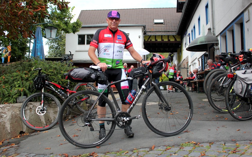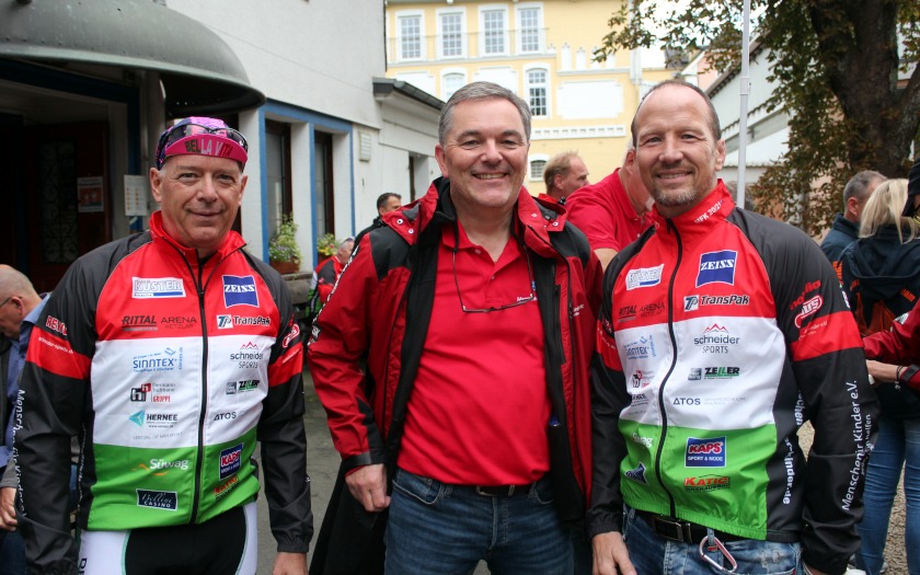 Spenden wurden aber auch am Tag der Sternfahrt an den Verein übergeben. So war beispielsweise Vereinsmitglied Dieter Deckenbach aus Lützelbach im Odenwald mit dem Fahrrad nach Braunfels gekommen, um nach 125 Kilometern eine Spende an den Verein zu überreichen, die er anlässlich seines 60. Geburtstages gesammelt hatte. Durch zwei Gruppenfotos an diesem Nachmittag war auch der Pulk aus Radtrikots des Vereins zu sehen, das für die ursprünglich geplante Spendenradtour alle zwei Jahre aufgelegt wird. Unter den Teilnehmenden der Sternfahrt waren auch der Welt- und Europameister im Ringen, Alexander Leipold, und Prof. Dr. Dieter Körholz, Chef der Station Peiper am Universitätsklinikum Gießen und Marburg (UKGM). Sie alle genossen den gemeinsamen Nachmittag und die Gespräche nach dem Radfahren und hoffen nach zweimaliger Absage auf ein Stattfinden der großen Spendenradtour im nächsten Jahr.