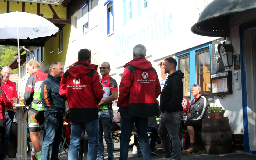 Eine Sternfahrt rief Radlerinnen und Radler aus allen Richtungen diesmal an einem Ort zusammen. Die Gaststätte Obermühle in Braunfels hatte die Mitglieder und Förderer des Vereins zu sich eingeladen, spendierte Freigetränke und schaffte in der Außengastronomie einen Ort zur Zusammenkunft für den Verein. Hier trafen sich den Nachmittag über die Radelnden nach ihren individuellen Touren zu Gesprächen über Erlebnisse und zukünftige Ideen im Sinne des Vereins, der sich für kranke oder in Not geratene Kinder einsetzt.