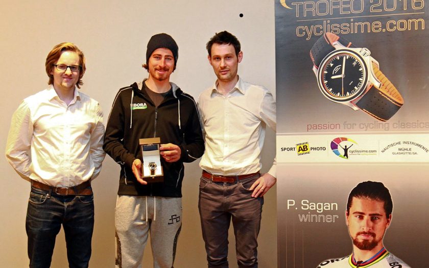 Rückwirkend für die Saison 2016 durfte sich der amtierende Weltmeister Peter Sagan als Gewinner der „Trofeo Cyclissime“ über eine personalisierte Uhr aus dem Haus der Uhrenmanufaktur „Mühle Glashütte“ freuen.