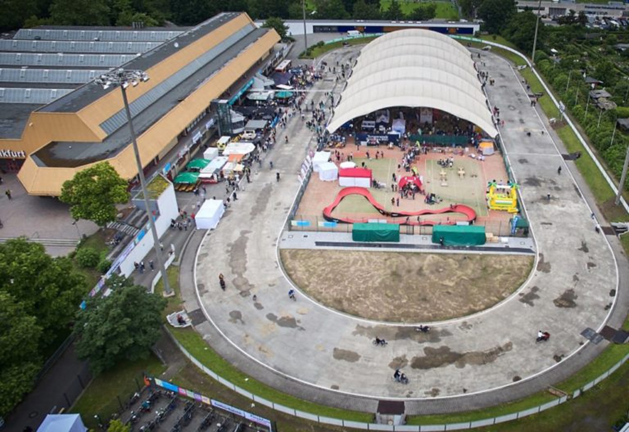 Im Open Air Bereich haben Besucher die Möglichkeit, (fast) alle Räder der VELOFrankfurt auf dem 400m langen Schnelllaufring ausgiebig Probe zu fahren. Mutige holen kräftig Schwung auf dem Pumptrack (dauerhaft), Anfänger wie Fortgeschrittene trainieren die Fahrtechnik auf dem Mountainbike Parcours mit Rennfahrerin und TrainerinKerstin Kögler (täglich 12:30 und 16:30 Uhr) und Fahrradfreude pur versprechen die Ausfahrten der Macher der VELOTHON und CYCLASSICS Rennen (10.6. 11 Uhr, Anmeldung über die VELOTHON Webseite). (pdf | Archivfoto: VELOFrankfurt)