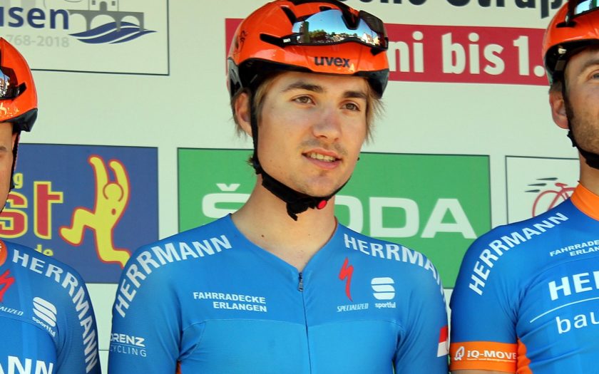 Zwar spielten er und seine Teamkollegen vom Herrmann Radteam bei der Vergabe des Deutschen Meistertitels im südhessischen Einhausen am Ende keine Rolle. Den Titel sicherte sich nach 228 Kilometern und fast fünf Stunden Renndauer Profi Pascal Ackermann vom Team Bora-hansgrohe, vor John Degenkolb (Trek-Segafredo) und Max Walscheid (Team Sunweb). Doch Victor Brück hat das Rennen um das Trikot mit dem schwarz-rot-goldenen Brustring eindrucksvoll mitgestaltet und einen Großteil des Renntages geprägt.