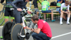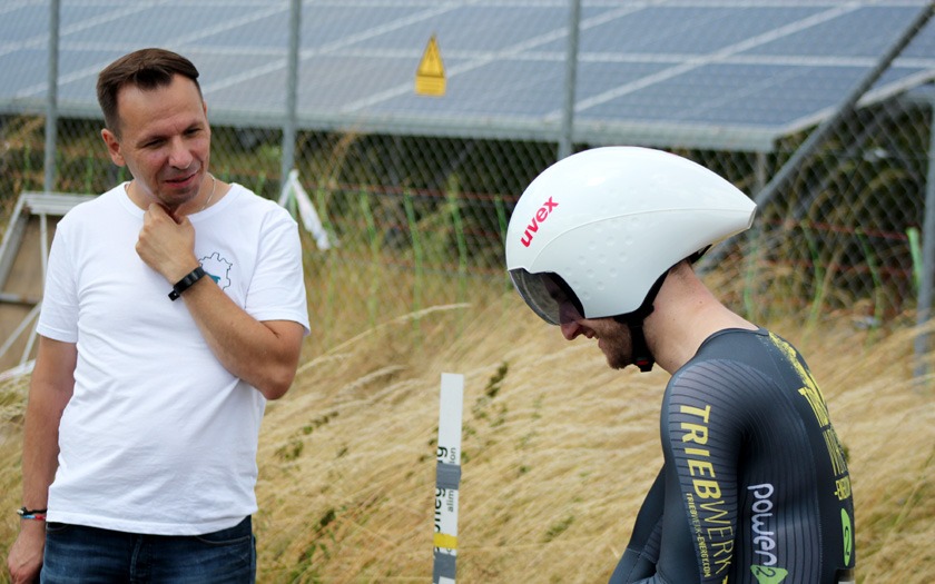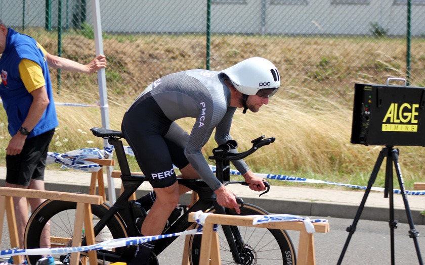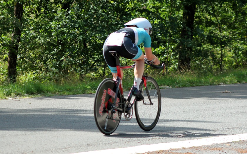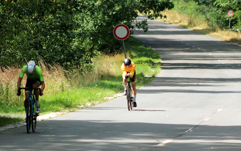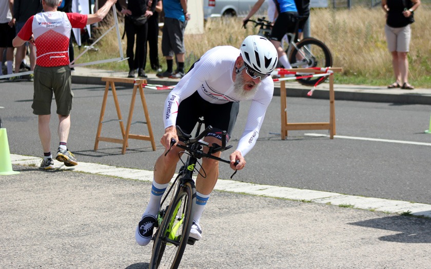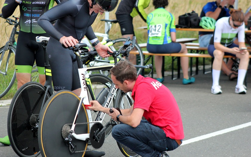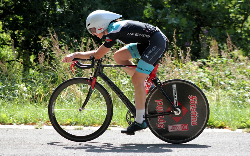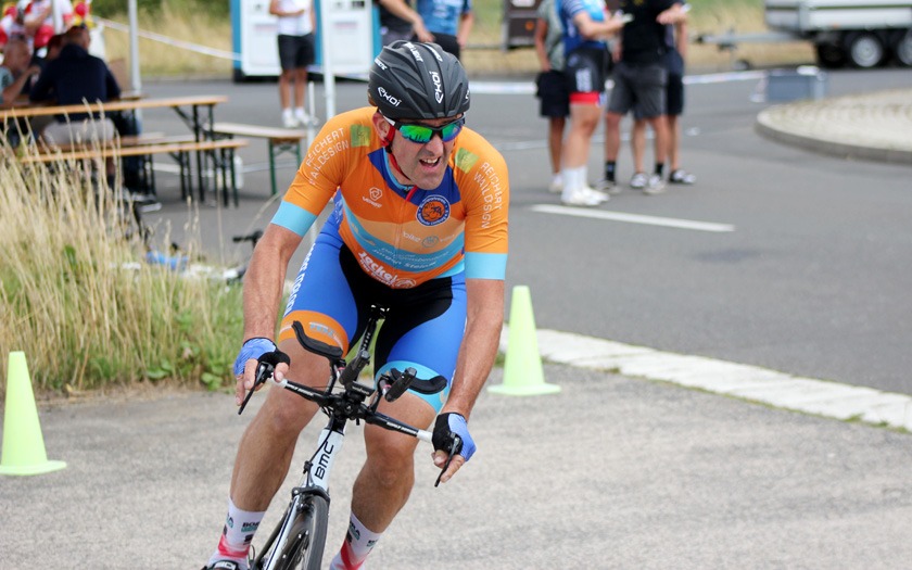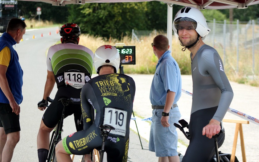 Mit rund 60 Höhenmetern pro Runde war die Strecke spürbar wellig. Sie verlief in langgezogenen Kurven durch bewaldetes Bundeswehr-Gelände zwischen Neustadt und Stadtallendorf und ist jährlich auch ohne Wind eine anspruchsvolle Meisterschaft im Einzelzeitfahren. Hinzu kommt, dass je nach Rennklasse unterschiedlich oft Wendepunkte zu meistern sind, an denen neu Fahrt aufgenommen werden muss. Und der Kampf gegen die Uhr hatte in diesem Jahr noch ein paar überraschende Wendungen mehr zu bieten, als nur die Wenden auf der Strecke.