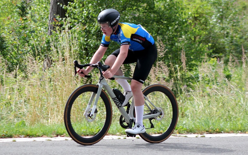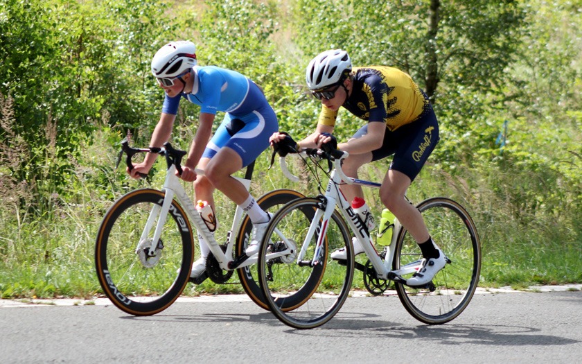 Der Fuldaer Leopold Beirig, der für den TGV Schotten fährt, war an der Zwischenzeitnahme nach zehn Kilometern schnellster Fahrer der Jugend U17. Doch in dieser Klasse war eine zweite Runde zu fahren, auf der er ein paar Sekunden einbüßte und nach 30:07,61 Minuten mit elf Sekunden Rückstand auf Jakob Pelzer (RSV Seeheim, 29:56,46) mit der Vize-Hessenmeisterschaft zufrieden sein musste. Sein Bruder Ferdinand Beirig konnte dem auffrischenden Wind, der Renndistanz und Konkurrenz im Rennen der Junioren von Beginn an standhalten.