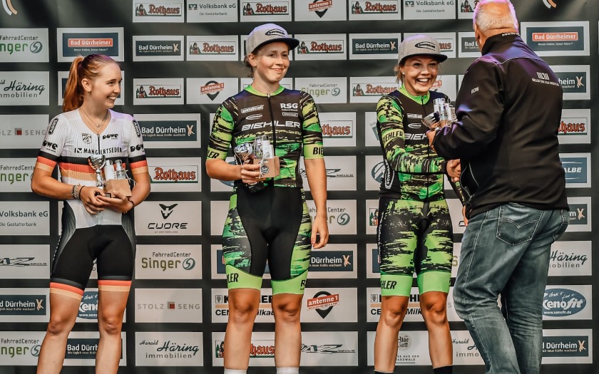 BAD DÜRRHEIM – Auftakt nach Maß für die RSG Gießen BIEHLER: Helena Bieber hat das Einzelzeitfahren der „Müller – Die lila Logistik Rad-Bundesliga“ beim Riderman in Bad Dürrheim vor Teamkollegin Katharina Fox und Antonia Niedermaier (Team Mangertseder Bayern) gewonnen. Auch die Schnellsten im Jedermann-Rennen kamen aus Mittelhessen.